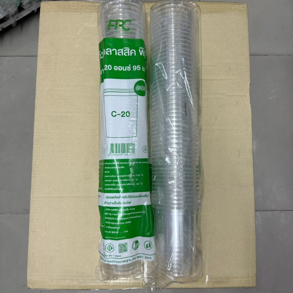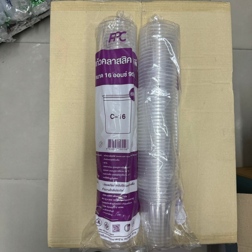 แก้วพลาสติก ทรงคลาสิค เนื้อ PP ขนาด 16, 20, 22 oz ปาก 95 mm. ใช้กับฝาขนาด 95 ได้ทุกชนิด จำนวน 50 ใบ