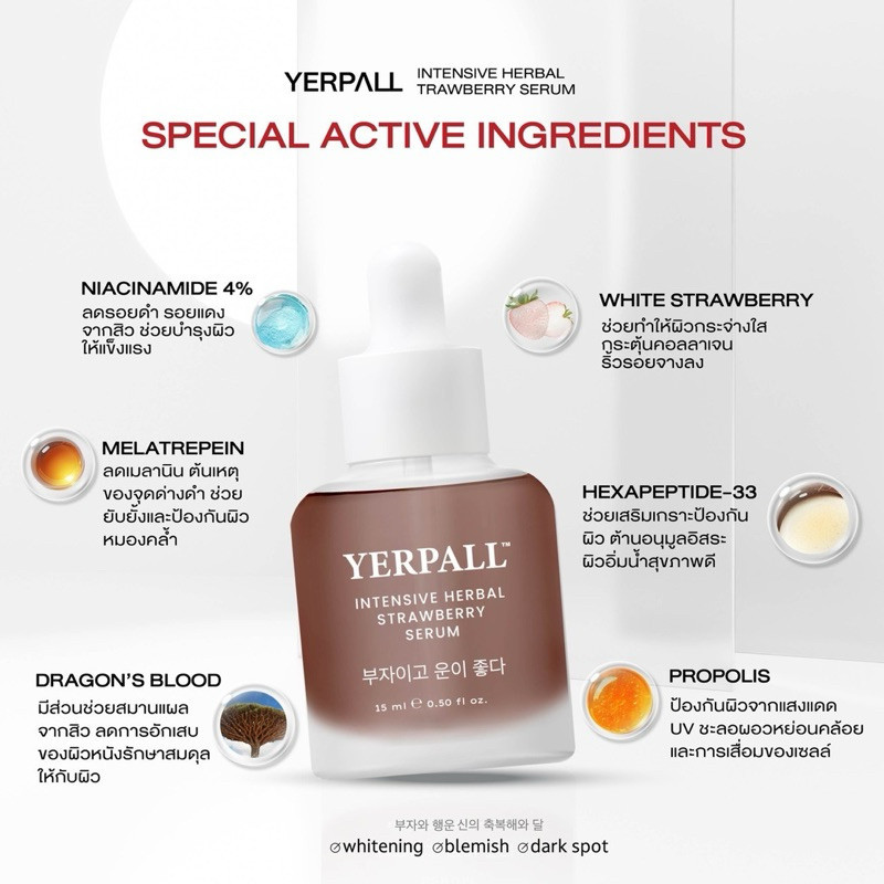 โปรพิเศษ! เซรั่มสตอ Yerpall Intensive Herbal Strawberry + FIRST CARE | ผิวหน้ากระจ่างใส ลดริ้วรอย