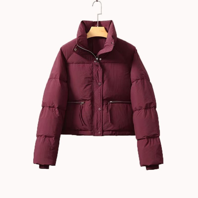 ฤดูใบไม้ร่วงและฤดูหนาวสลิมฟิตยืนปกแจ็คเก็ตผู้หญิงสั้นสบายๆน้ําหนักเบาผ้าฝ้ายเสื้อ