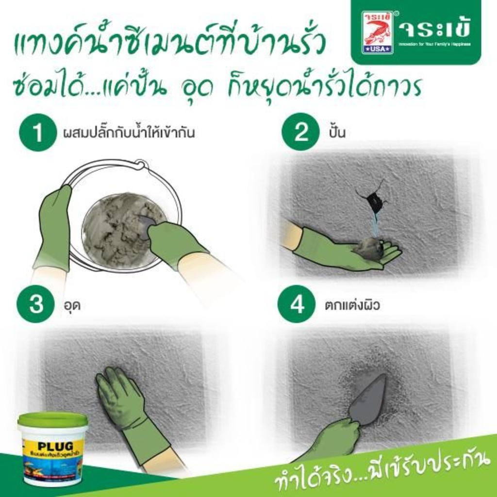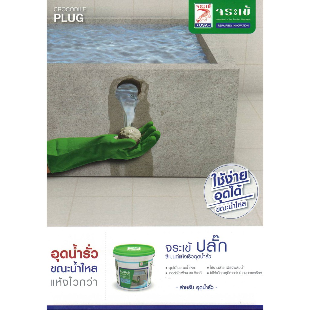 จระเข้ ปลั๊ก ซีเมนต์แห้งเร็ว อุดน้ำรั่ว ขนาด 1 กก. Plug