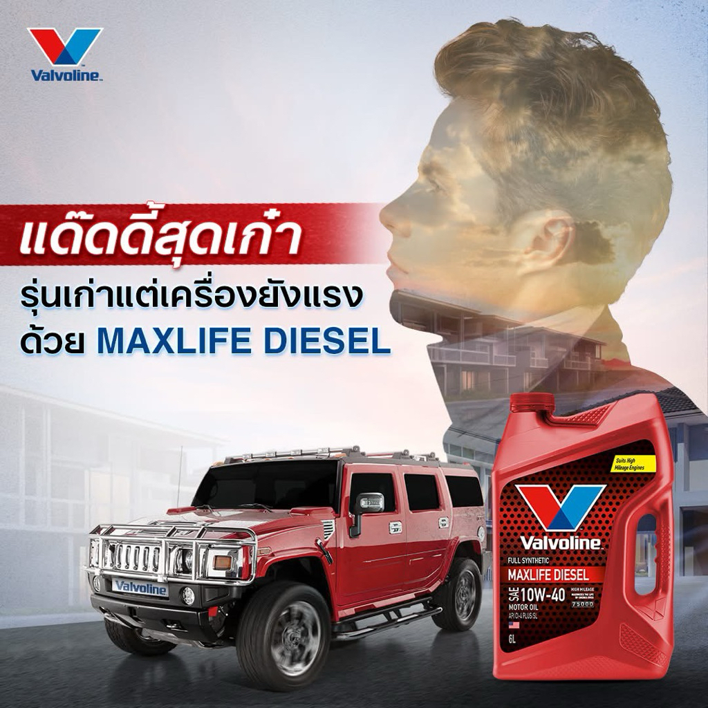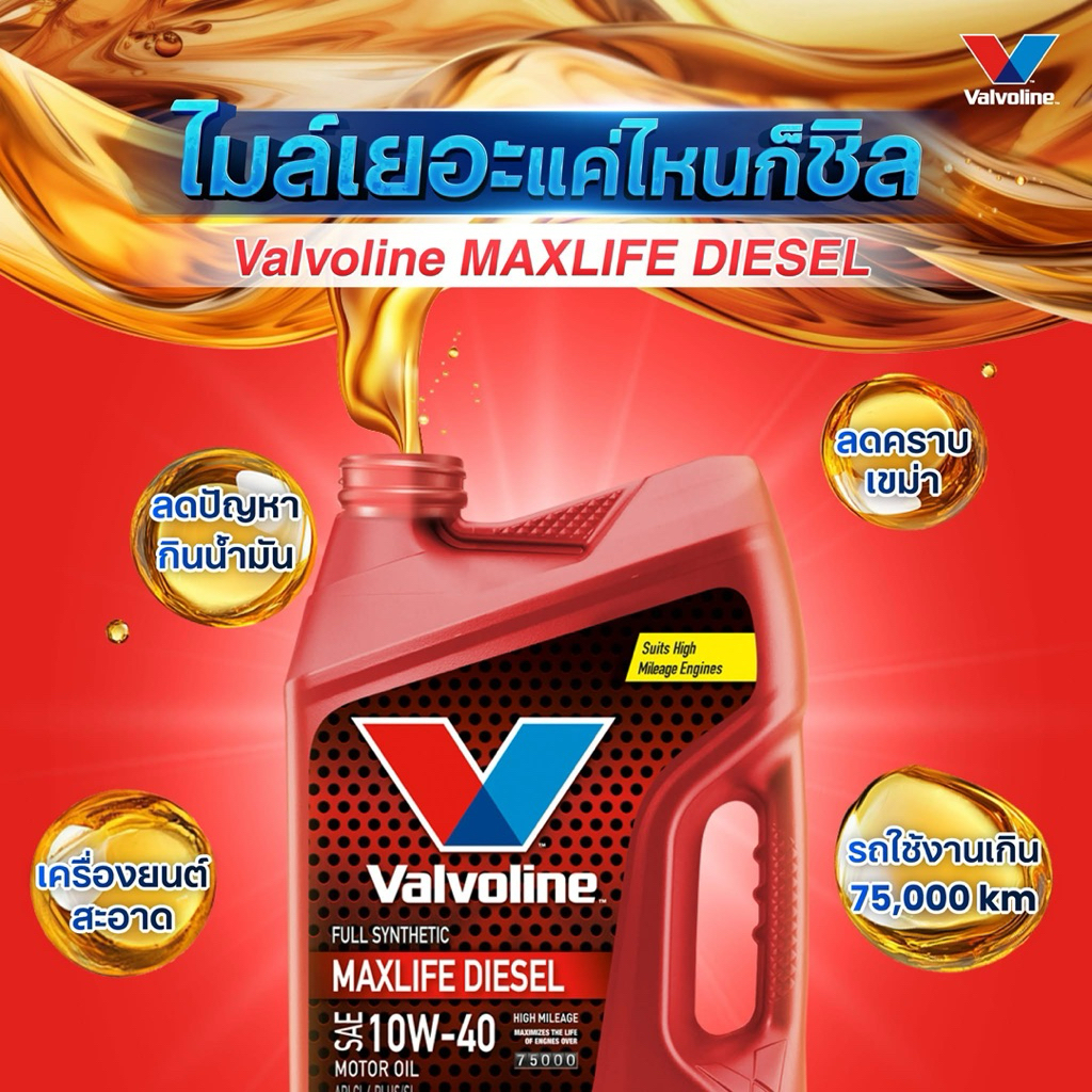 ดีเซล*Valvoline MaxLife Diesel SAE 10W-40 น้ำมันเครื่องดีเซลสังเคราะห์ ขนาด6-7-8ลิตร สำหรับรถเลขไมล์สูง2แสน (แถมกรอง)