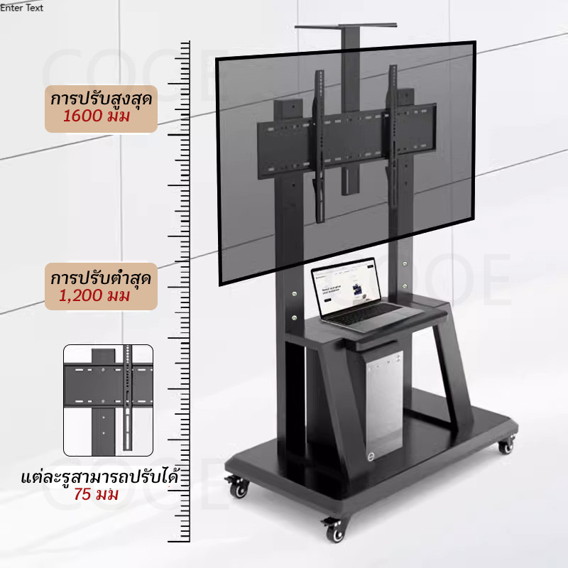 ขาตั้งทีวี 32-85 นิ้ว รุ่นหนาพิเศษ รองรับน้ำหนัก 300 kg ขาทีวีเคลื่อนที่ ปรับมุมเอียงได้ ชั้นวางจอภาพสากล
