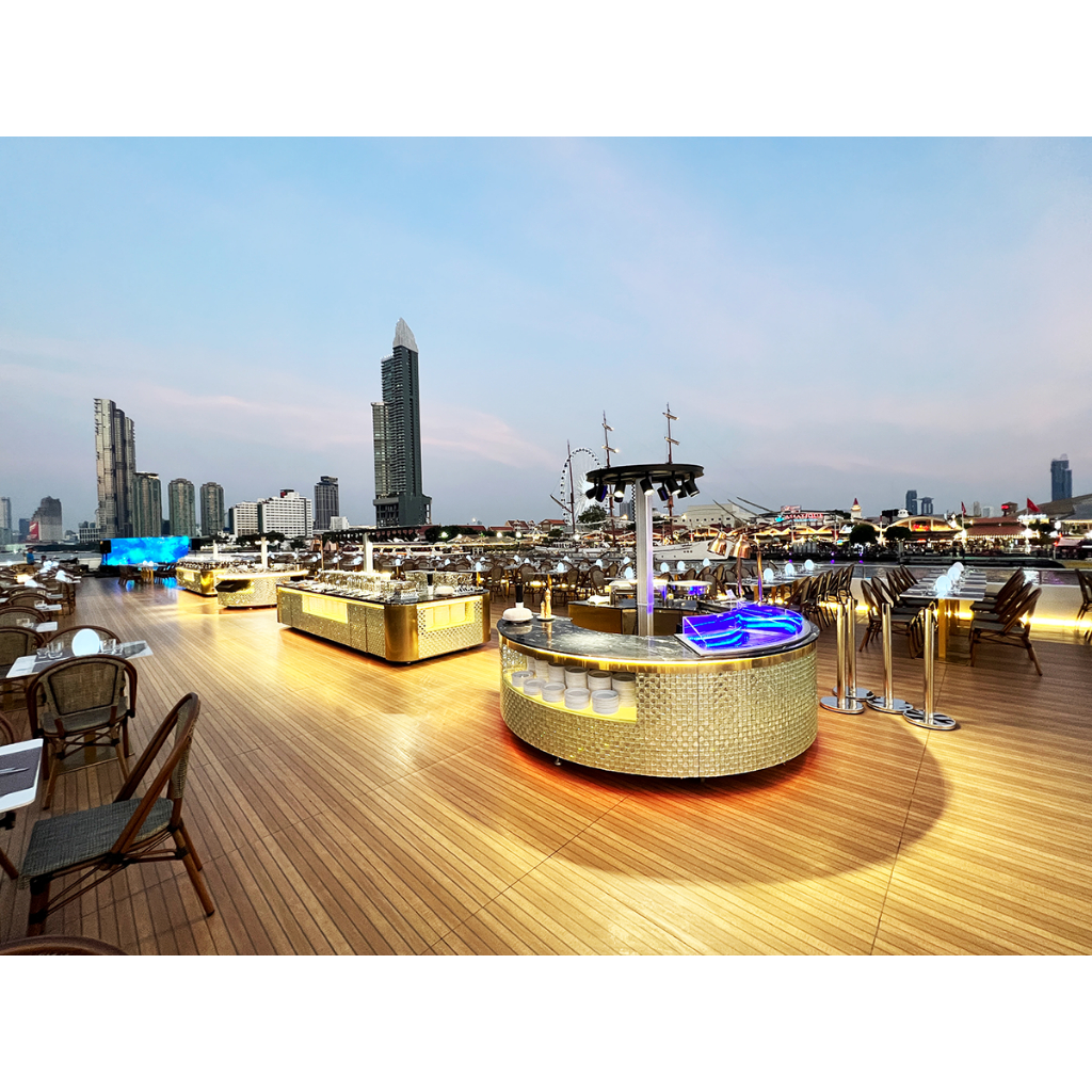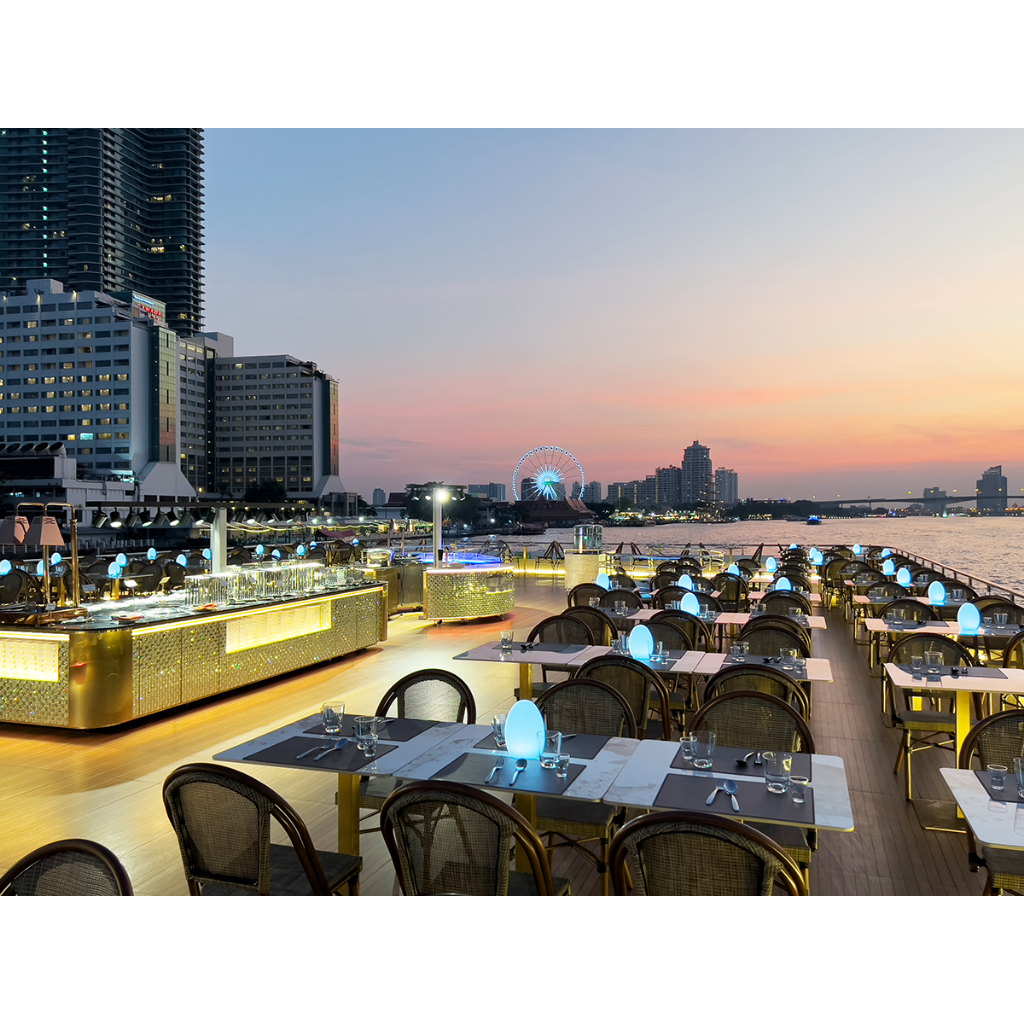 บัตรล่องเรือดินเนอร์ สไตล์ Luxury 6 ดาว วิว ดาดฟ้า 360 ํองศา + บุฟเฟ่ต์ + Seafood + ซาซิมิแซลมอน เรือ THE PLANET CRUISE