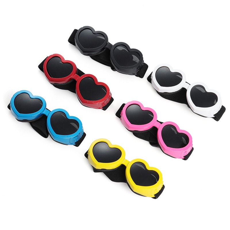 แว่นตากันแดด รูปหัวใจ ขนาดเล็ก กันน้ํา ป้องกันรังสียูวี สามารถปรับได้ สําหรับสัตว์เลี้ยง สุนัข แมว จํานวน 1 ชิ้น