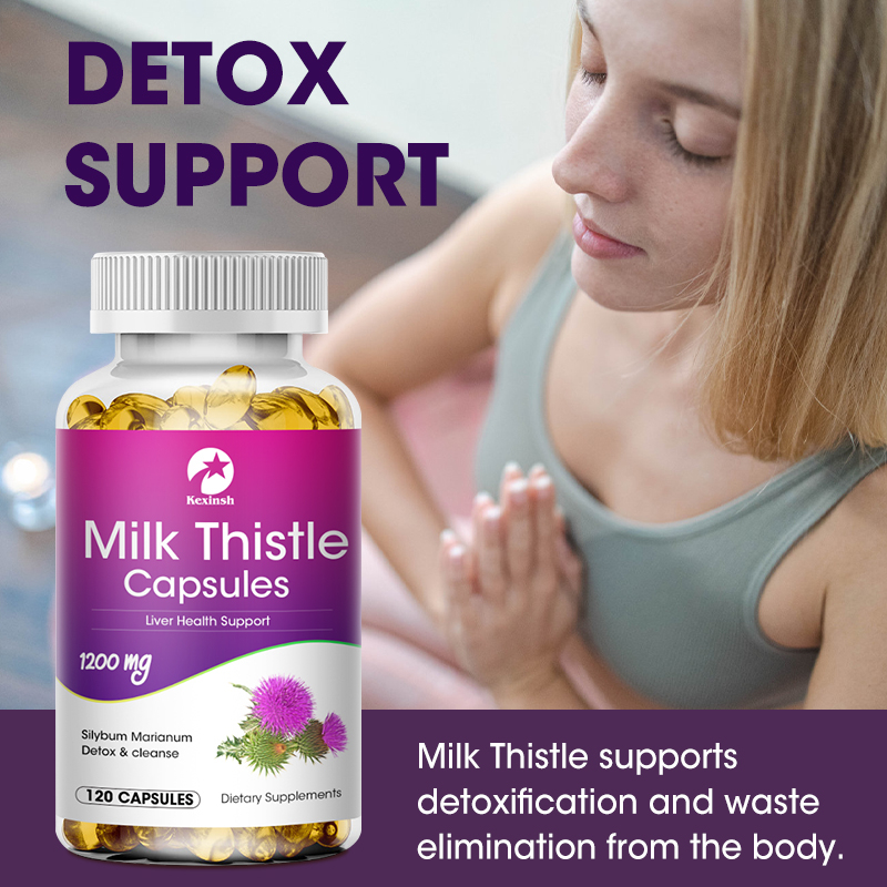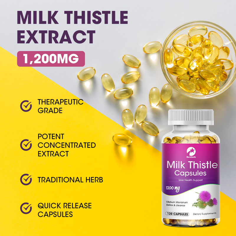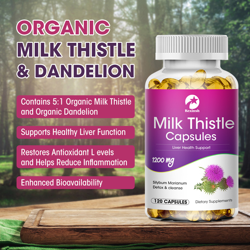 Kexinsh Milk Thistle Silymarin 4:1 สารสกัด 1200 มก. เพื่อสุขภาพตับ ลดไขมันในเลือด และปกป้องหัวใจและหลอดเลือด