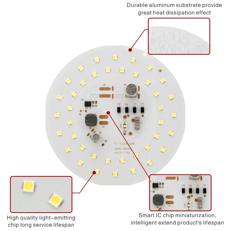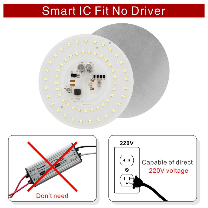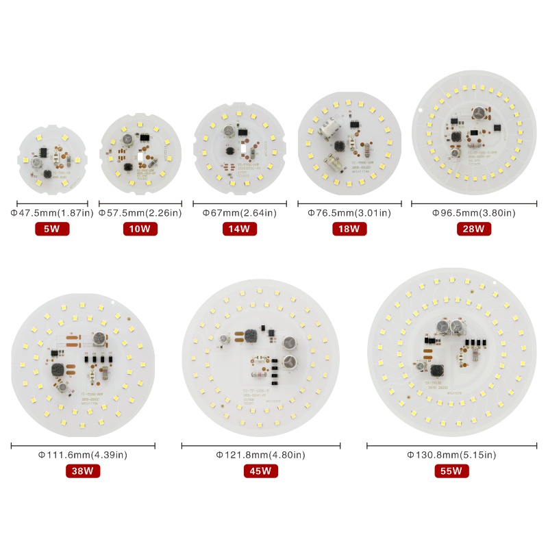 Got Liang ชิปหลอดไฟ LED ทรงกลม 2835SMD DOB AC 220V สําหรับ 55W 45W 38W 28W 18W 14W 10W 5W