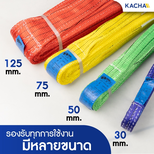 Kacha (แท้) สายพานยกของ มีห่วงหัว-ท้าย สลิงผ้าใบ1-10ตัน สลิงผ้าใบ สลิงแบน สลิงโพลีเอสเตอร์ หลายขนาด