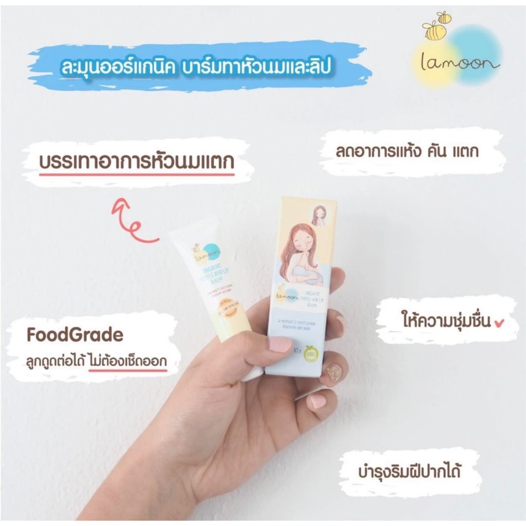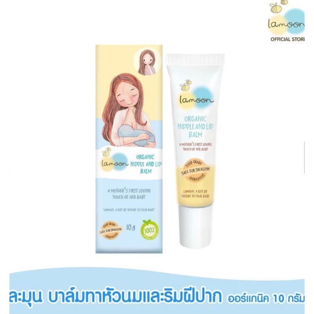 (ส่งด่วน/ส่งทันที🔥) Lamoon บาล์มทายอดหน้าอกและริมฝีปากออแกนิก ขนาด 10 กรัม ที่ประคบเต้า