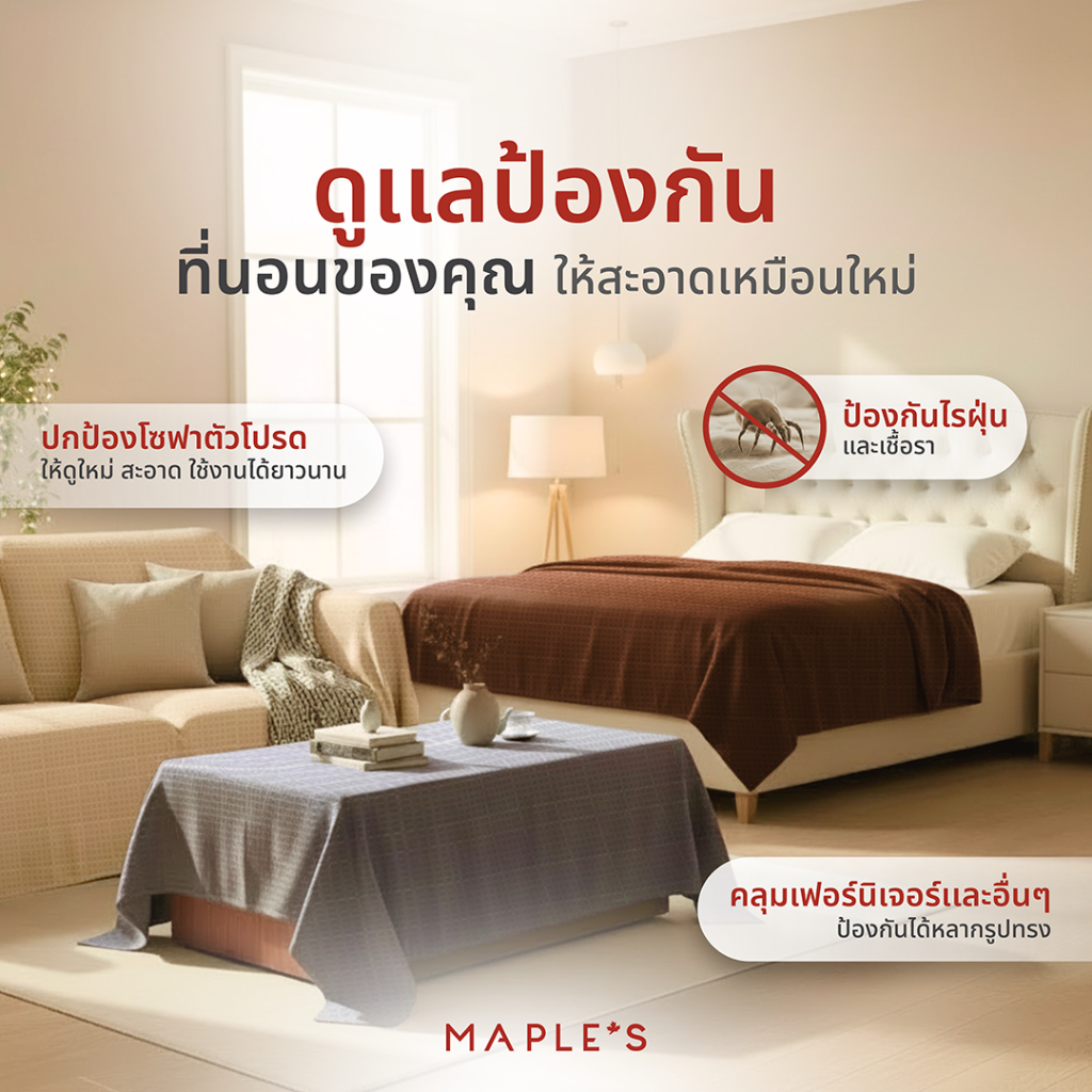 MAPLE'S ผ้าคลุมเตียง ผ้าคลุมโซฟา ผ้าคลุมเฟอร์นิเจอร์ เตียง 3.5ฟุต 5ฟุต 6ฟุต ปกป้องจากฝุ่น bedspread
