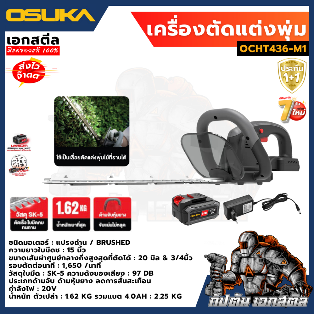 (ถูกสุด) OSUKA เครื่องตัดแต่งพุ่มไม้ไร้สาย 20v OCHT436-M1 (ครบชุด) / OCHT436-N ประกัน1+1ปี