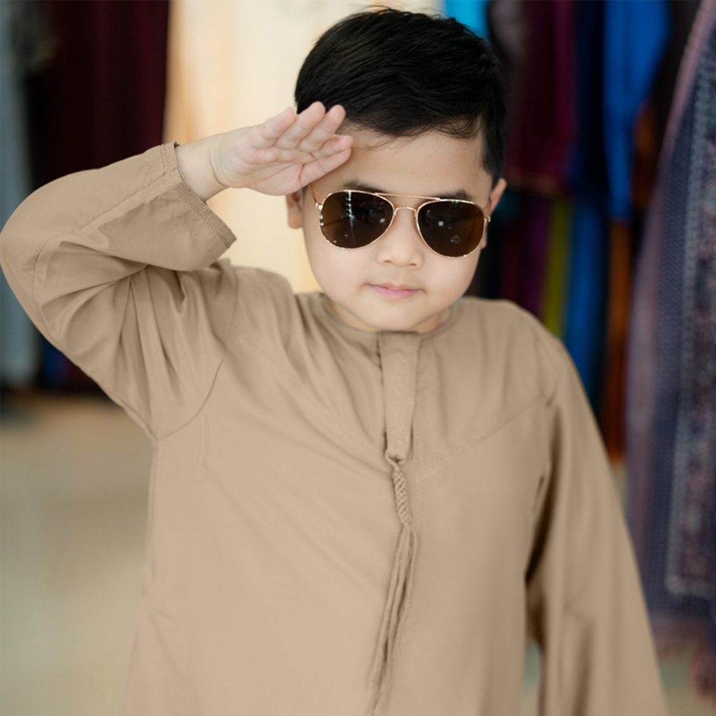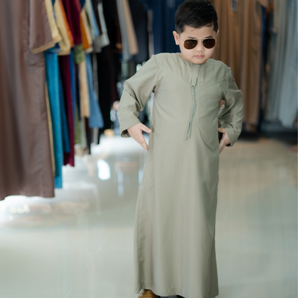 โต๊ปโอมานเด็กแขนยาว สินค้านำเข้าจากต่างประเทศ เหมาะสำหรับใส่ละหมาดออกงานอิสลาม BA31 รุสมีนีมุสลิม