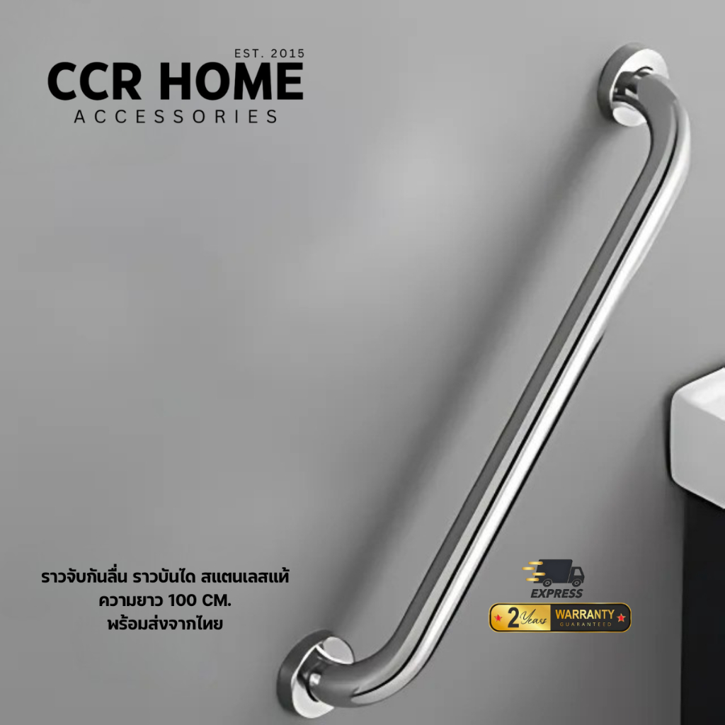 ราวจับกันลื่นสแตนเลสแท้ ราวจับบันได 100 cm ราวจับผู้สูงอายุ เด็ก ความยาว 100 Cm ccrhome