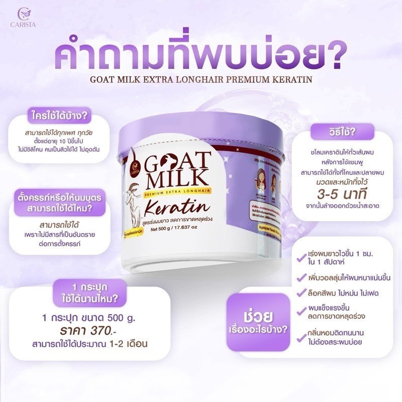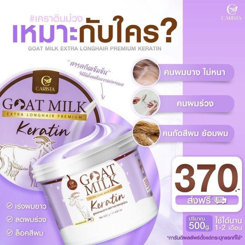 ðĨāđāļāđ/āļāļđāļāļāļĩāđāļŠāļļāļ/āđāļĨāļāđāļāļļāļāļ§āļąāļðĨCARISTA GOAT MILK KERATIN āļāļēāļĢāļīāļŠāļāđāļē āđāļāļĢāļēāļāļīāļāļāļĄāđāļāļ° āļĄāļĩ 2 āļŠāļđāļāļĢāđāļŦāđāđāļĨāļ·āļāļ āļāļāļēāļ 500 g. āļŠāļĩāļāđāļģāļāļēāļĨ/āļŠāļĩāļĄāđāļ§āļ