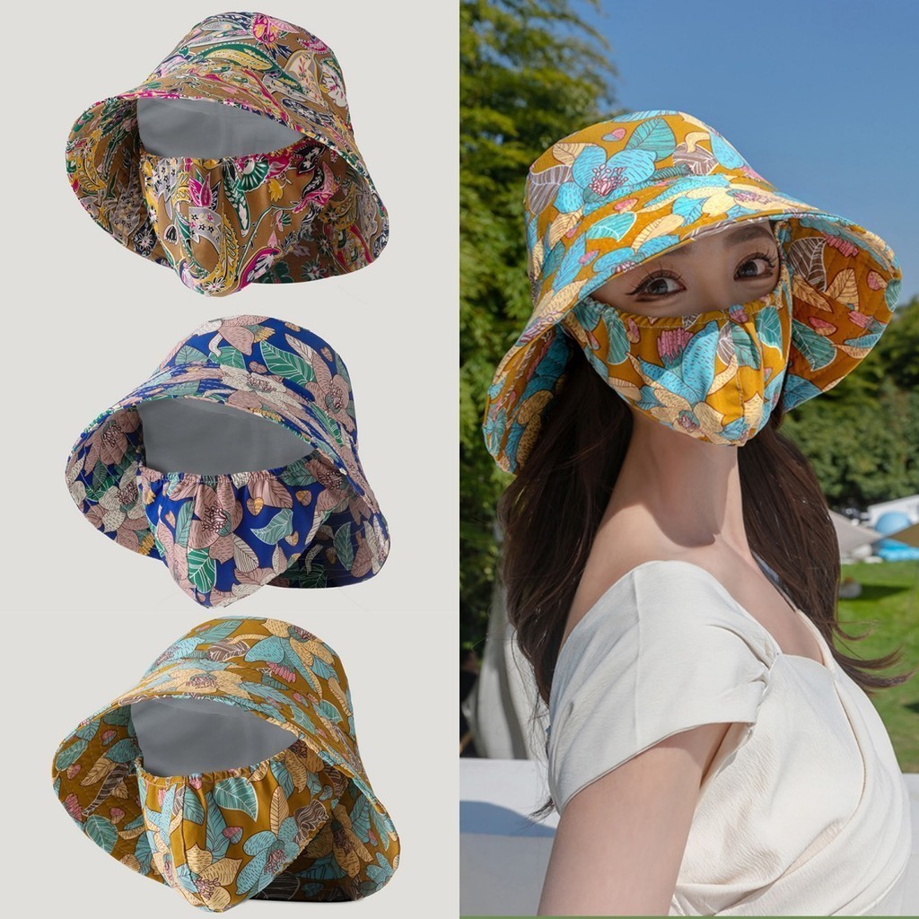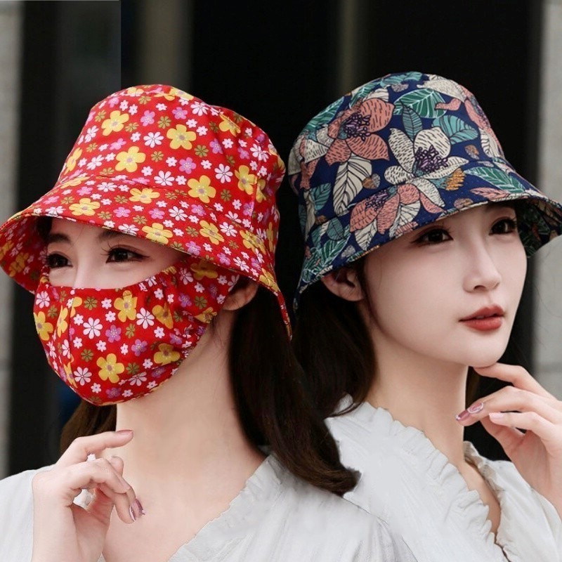 หมวกกันแดดสตรีฤดูร้อน ป้องกันฝุ่น ระบายอากาศได้ดี ลายดอกไม้ หมวกชาป้องกันรังสียูวี แฟชั่นฤดูร้อน