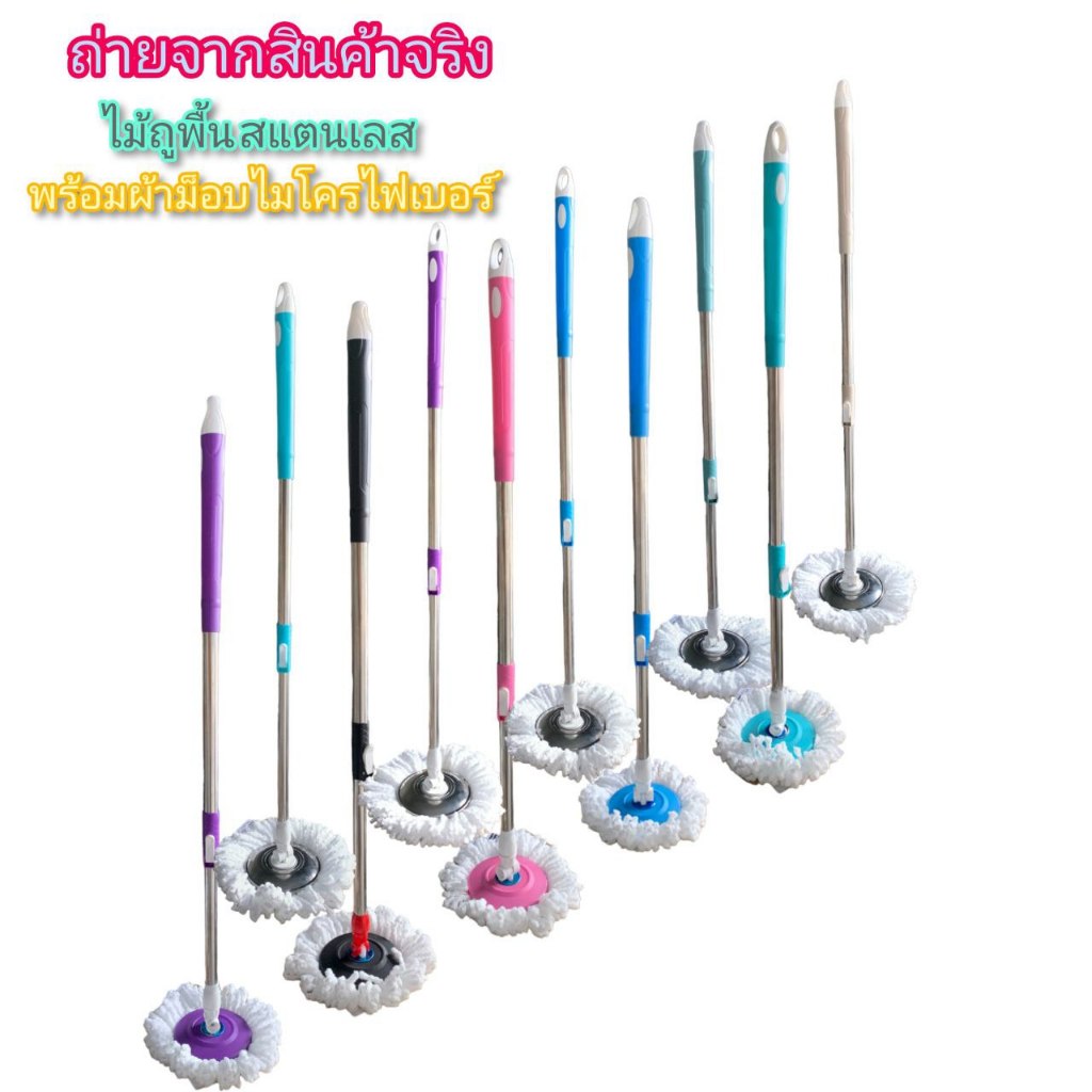 ไม้ถูพื้นสแตนเลส ไม้ม็อบพร้อมผ้าไมโครไฟเบอร์ ไม้ถูพื้นเก็บฝุ่น