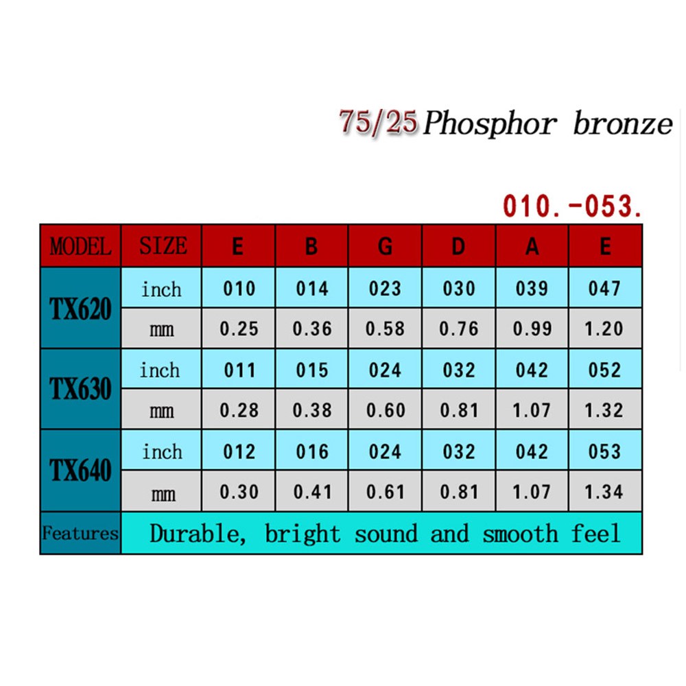 Orphee 6 ชิ้น/เซ็ตกีตาร์อะคูสติก String แกนหกเหลี่ยม + 8% นิกเกิลแสงพิเศษ TX620/TX630/TX640