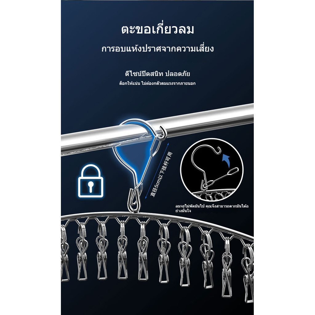 MENGTING หลายหัวหนีบผ้า กันลม แขวนมัลติฟังก์ชั่ชั้นวางถุงเท้าสแตนเลสหลายคลิปชั้นวางชุดชั้นใน 【20 คลิป】