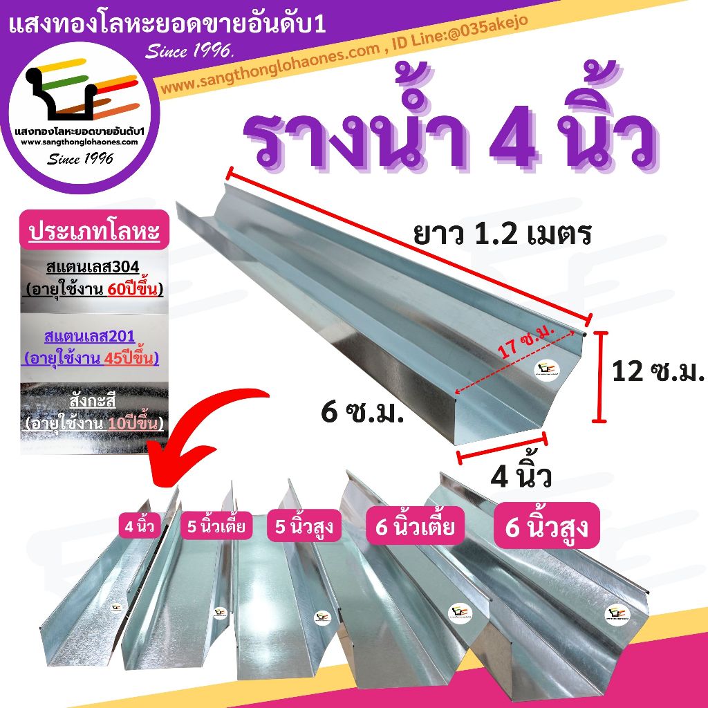 รางน้ำฝน4นิ้ว *ยาว1.20เมตร* สินค้าได้มาตรฐานมีคุณภาพร้านขายมากว่า30กว่าปี