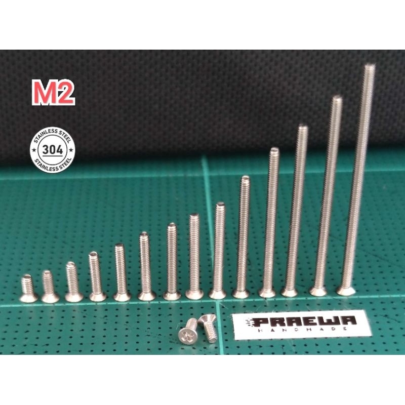 [ส่งถูก!!] น็อตตัวผู้ M2 หัวเทเปอร์ หัวจม สแตนเลส 304 ขนาด 5-60mm สำหรับรถทามิย่า - Mini4WD M2 Counter Sink 5-60mm SS304
