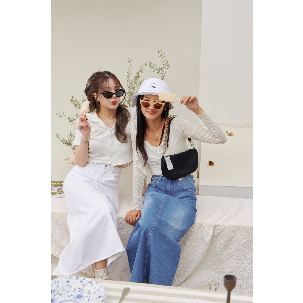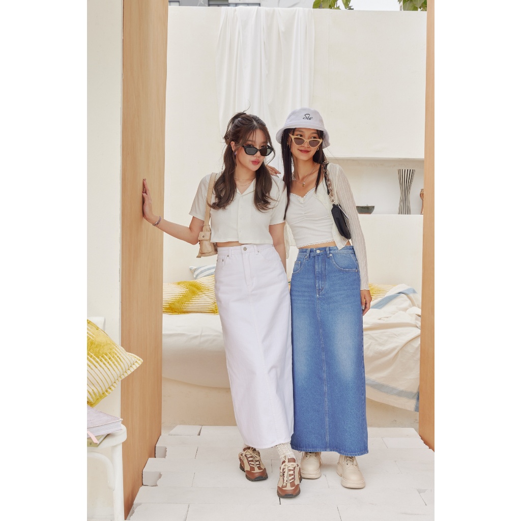Sis story กระโปรงยีนส์ ยาว ทรงเอ เอวสูง ผ่าหลัง Sis SK 206 Honey back-slit maxi denim skirt