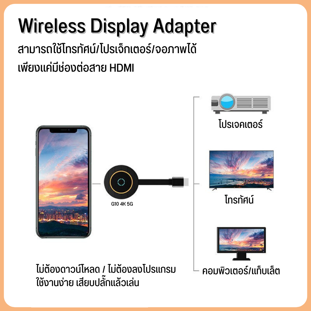 UDelectronic G10 อุปกรณ์สะท้อนหน้าจอแบบไร้สาย MiraScreen ความละเอียด 4K, FULL HD รองรับ wifi 2.4/5G