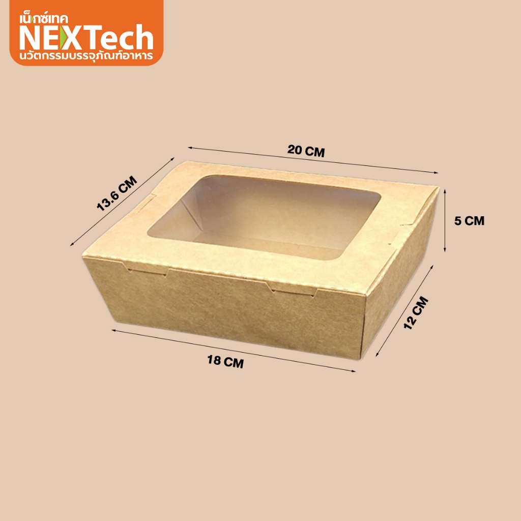 Nextech รุ่น PWC1200K ฝาพับหน้าต่าง (200 ชิ้น/ลัง) กล่องอาหาร กล่องกระดาษคราฟท์ฝาพับหน้าต่าง ปริมาตรบรรจุ 1200 มล.