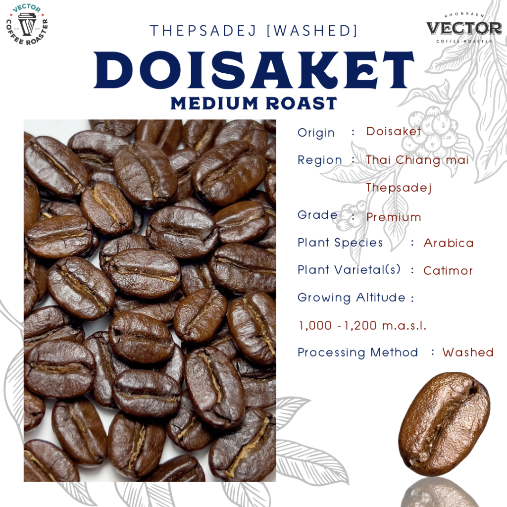 VECTOR : เมล็ดกาแฟคั่วกลาง จากดอยสะเก็ด wash process 200 กรัม
