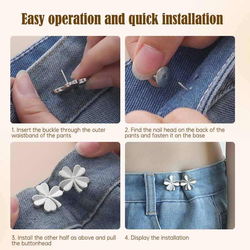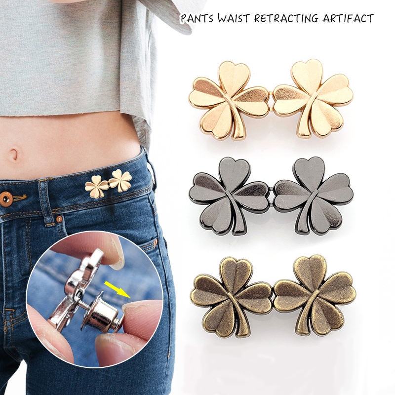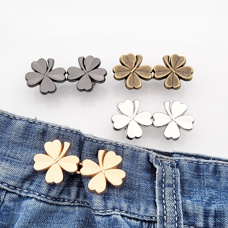 COD❤️กระดุมโลหะสี่ใบโคลเวอร์แบบปรับได้ถอดออกได้ใช้ซ้ําได้สําหรับรัดเอวกางเกงยีนอุปกรณ์เสื้อผ้าสวยงามทนทาน-a.one