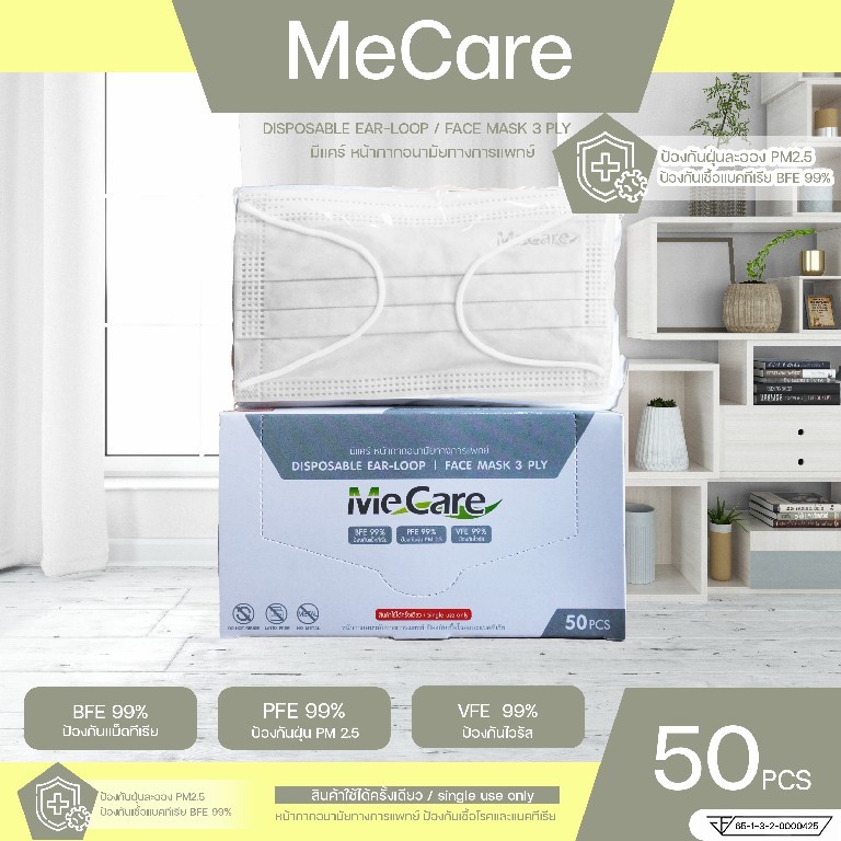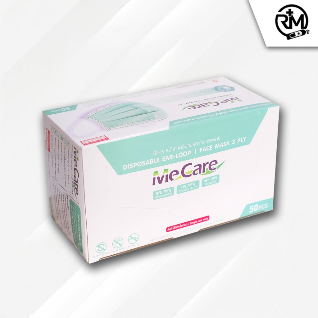 แมสMe Care แมสทางการแพทย์ 3 ชั้น หน้ากากอนามัยการแพทย์ 3 ชั้น (50ชิ้น/กล่อง) มี อย.และมาตราฐาน มอก.ในไทย