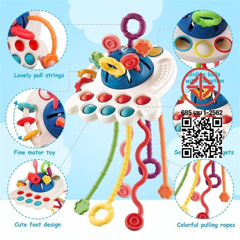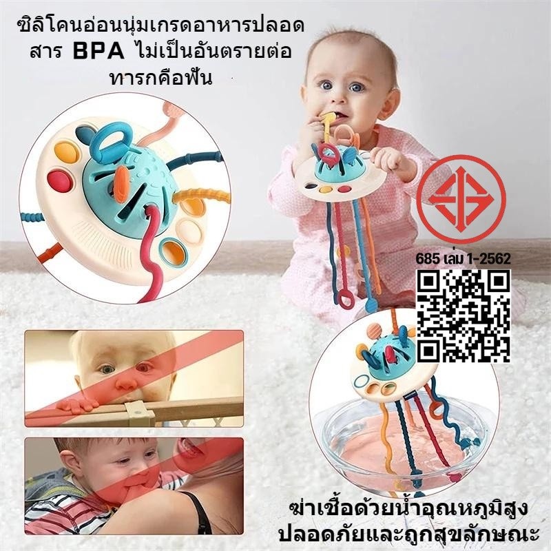 Berma Baby ซิลิโคนดึงเชือก ของเล่นประสาทสัมผัสมอนเตสซอรี่ เด็กเคี้ยวของเล่นเชือก ฝึกประสาทสัมผัสนิ้ว