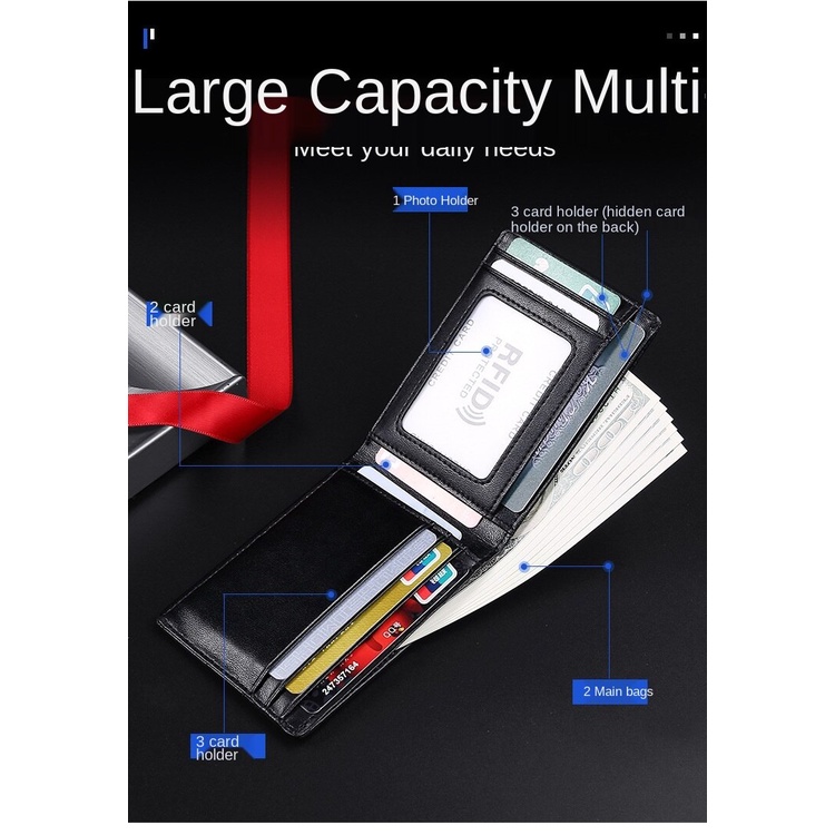 Rfid Blocking กระเป๋าสตางค์ผู้ชายหนังบางเฉียบมินิกระเป๋าสตางค์สําหรับผู้ชายแฟชั่นดอลลาร์กระเป๋า RFID บางชายกระเป๋ามินิกระเป๋าสตางค์
