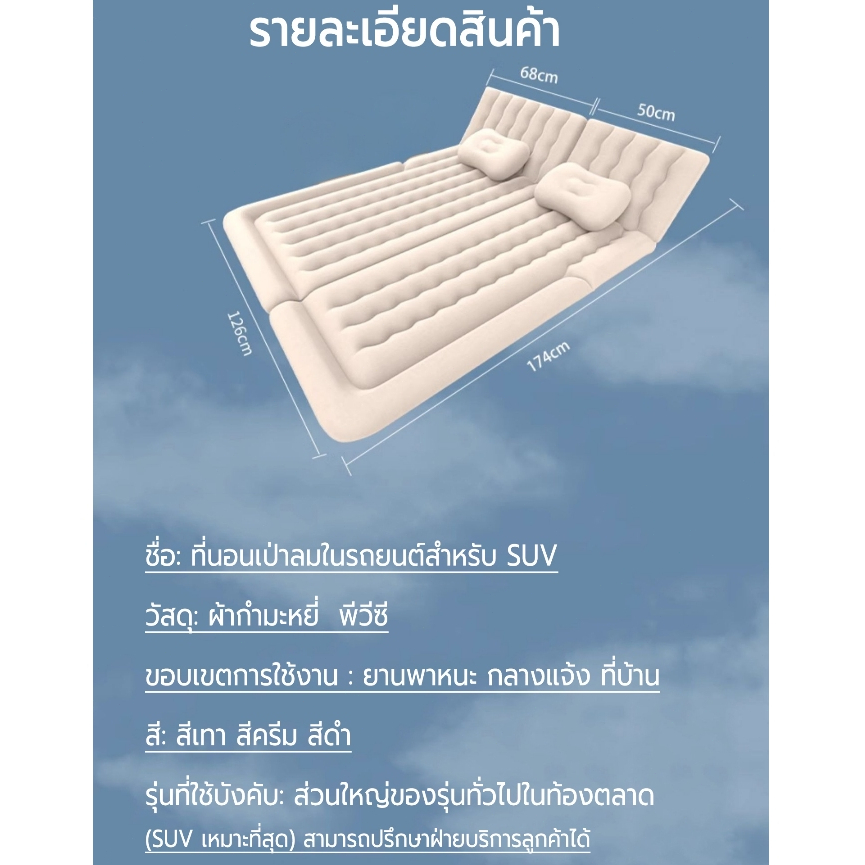 ที่นอนเป่าลม ที่นอนในรถ ที่นอนเบาะหลังรถยนต์ เตียงลมในรถยนต์ เบาะนอนกลางแจ้ง เปลี่ยนเบาะหลังรถให้เป็นเตียงนอน