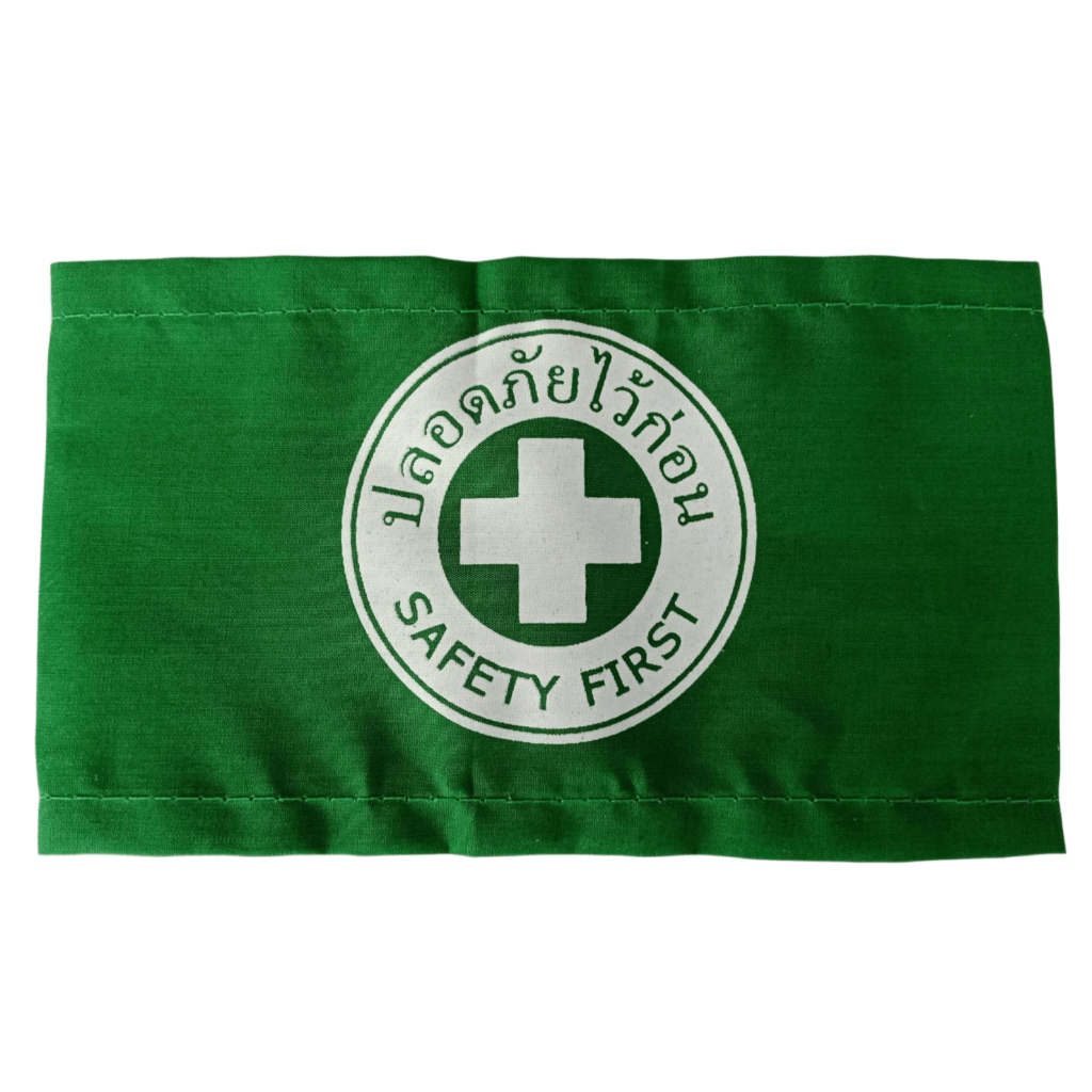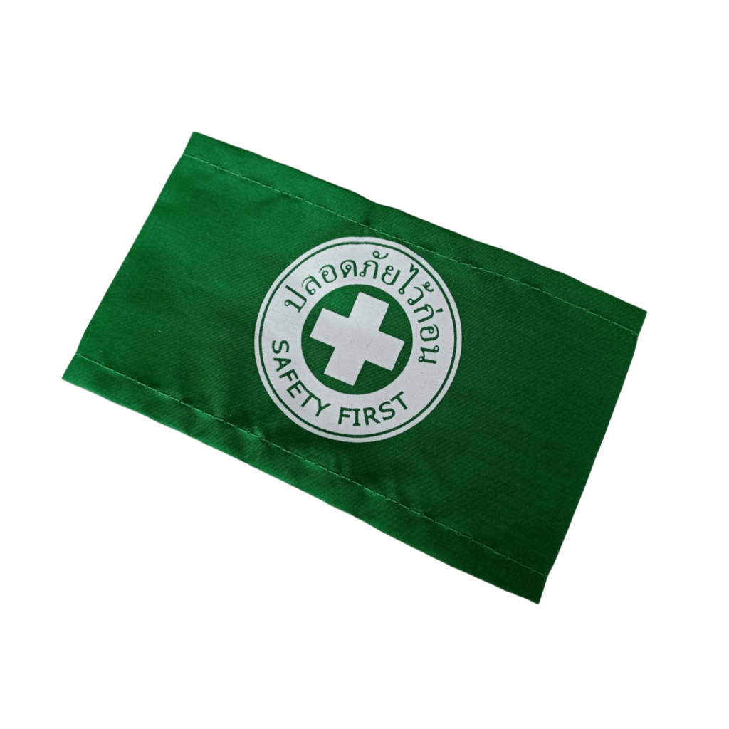ปลอกแขน safety สีเขียว สกรีนผ้า