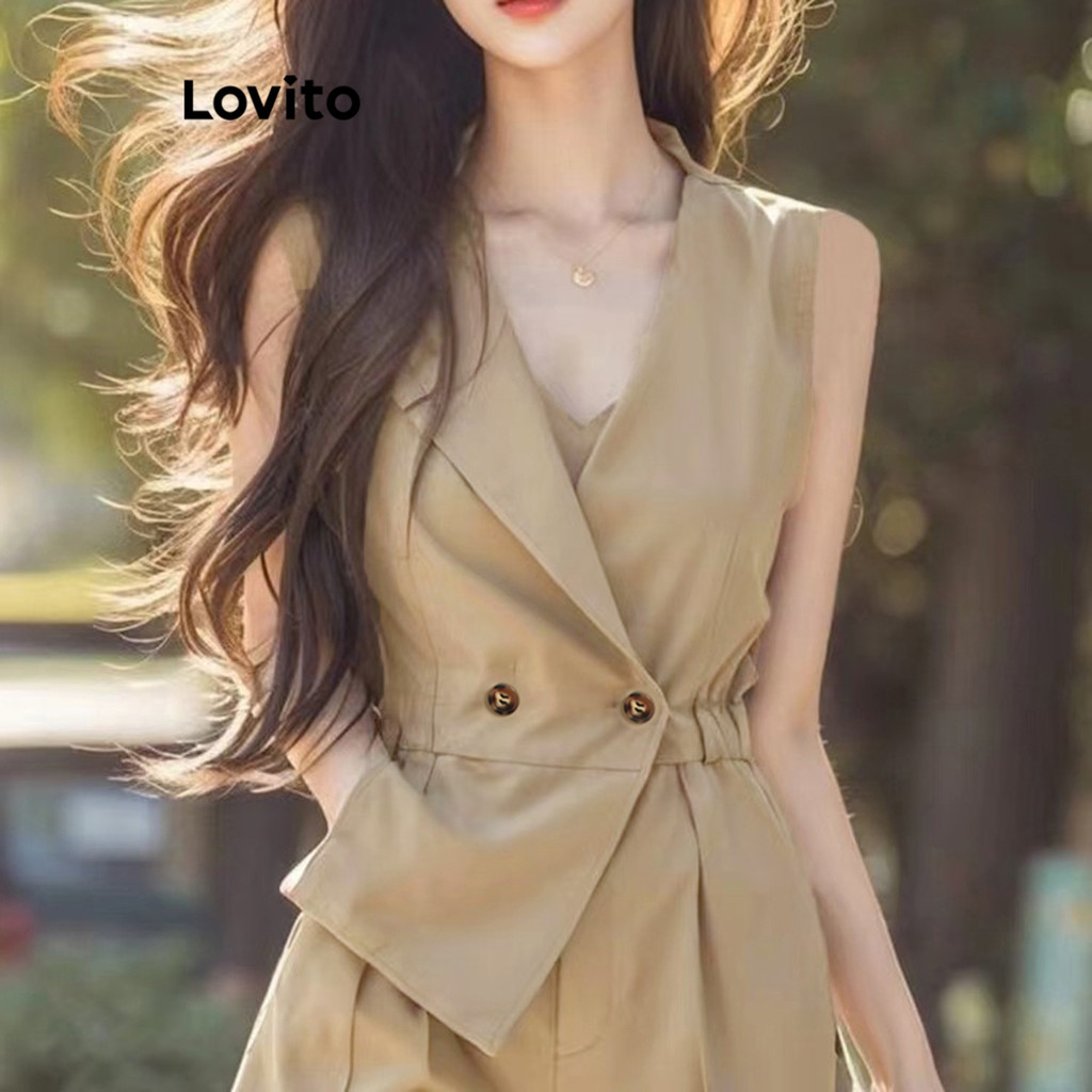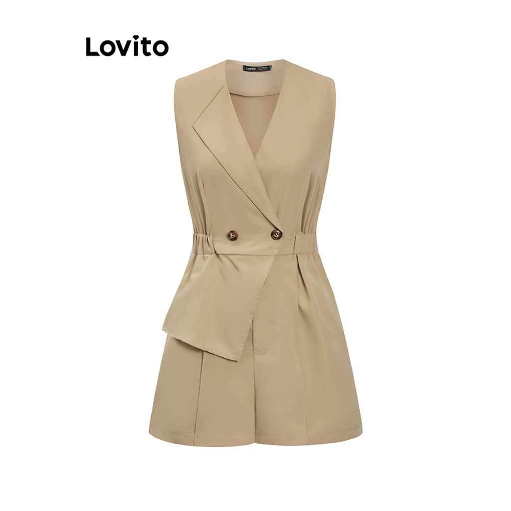 Lovito จั๊มสูท แต่งกระดุม 2 in 1 เรียบหรู สำหรับผู้หญิง L105MD568