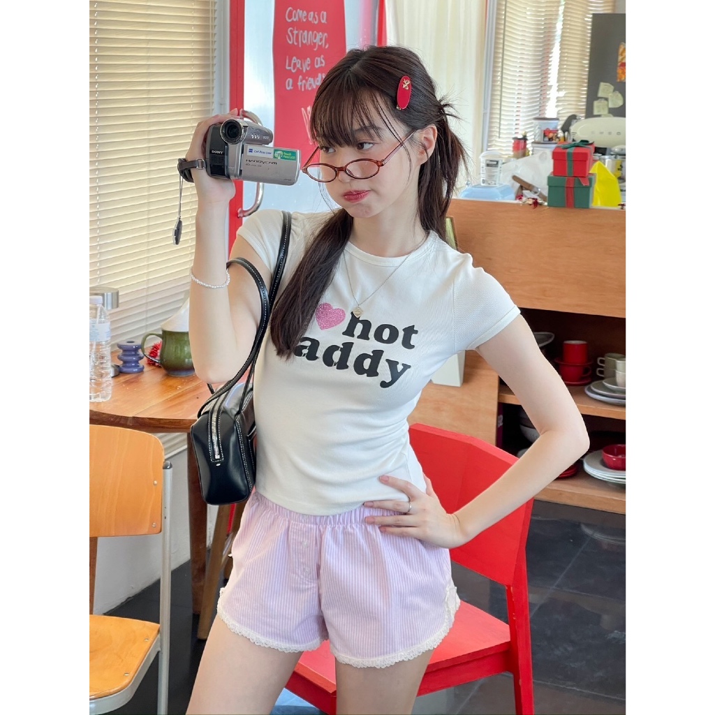Choosedress A1991 Hot Daddy Tee เสื้อยืดเเขนสั้นสีขาว / เสื้อยืดเเขนสั้นสีดำ เสื้อสรีนลายหัวใจ
