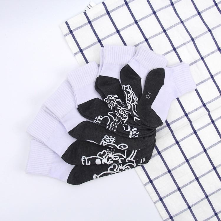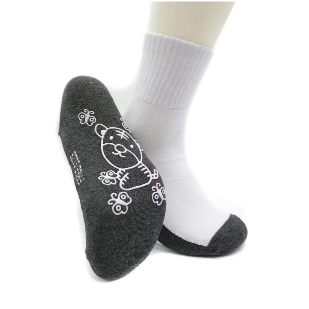 ถุงเท้านักเรียน (แพ็ค12คู่ 3-12อายุ)🔥พร้อมส่ง🔥ถุงเท้า กันลื่น สีขาวพื้นเทา เนื้อผ้าหนา นิ่ม กระชับเท้า ราคาถูก LY3-12D