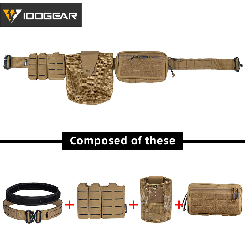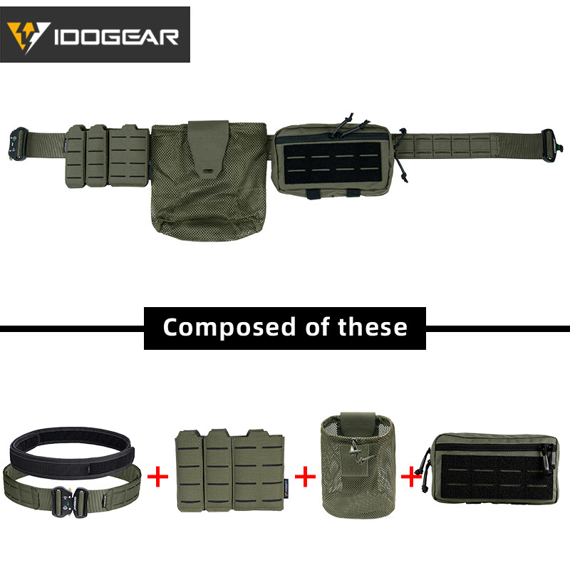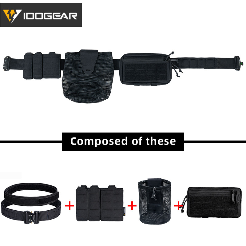 Idogear เข็มขัดยุทธวิธี 2 "กว้าง 3 กระเป๋า 9 มม.556 Triple Mag กระเป๋า Roll-up ตาข่ายรีไซเคิลกระเป๋า Dump กระเป๋ายุทธวิธีเข็มขัดชุด 3415