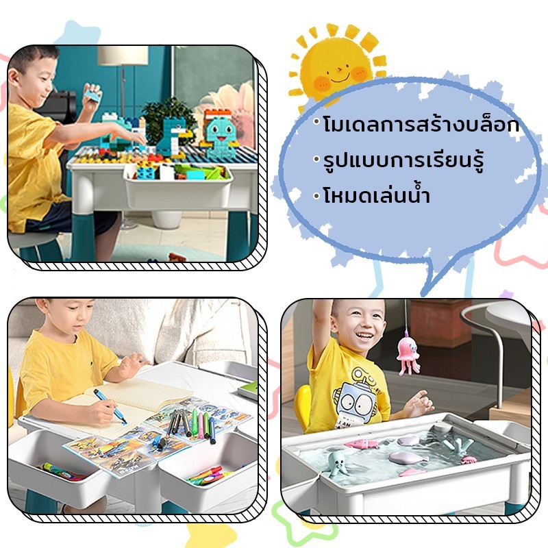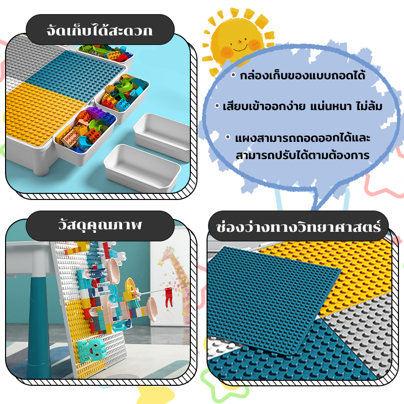 โต๊ะตัวต่อเด็ก +2เก้าอี้+ตัวต่อ605 ชิ้น เสริมพัฒนาการเด็ก