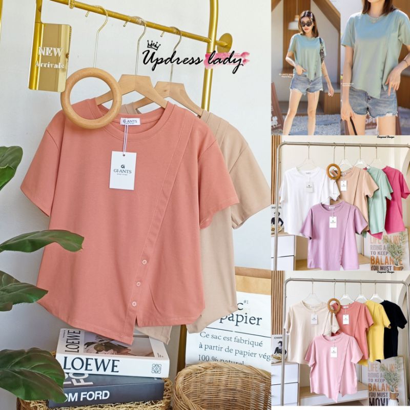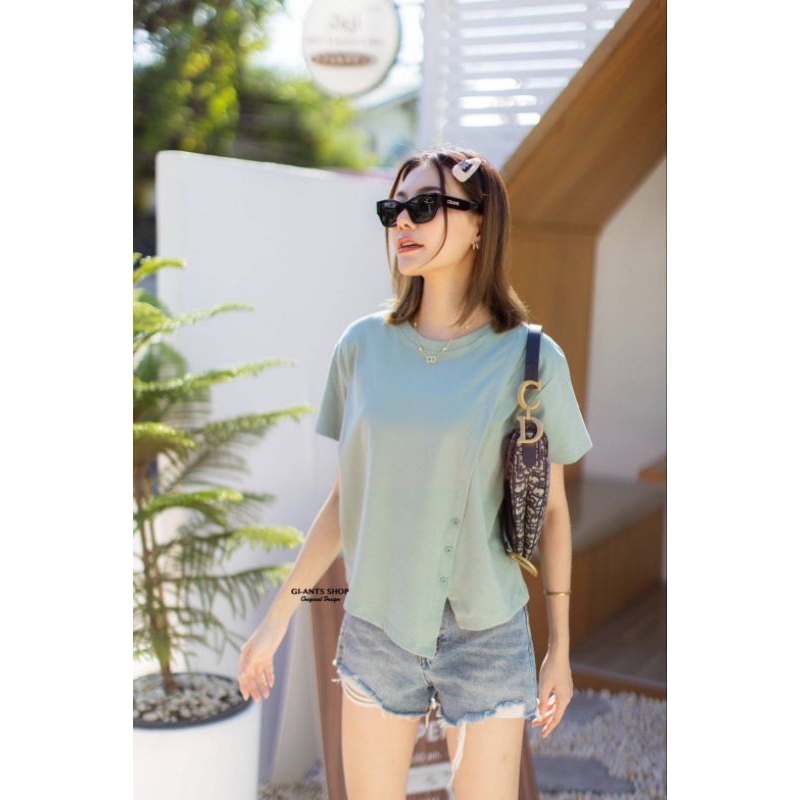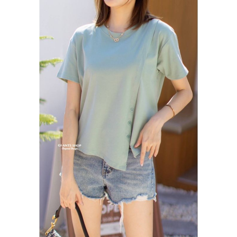 G112 เสื้อยืดแต่งกระดุมเฉียง