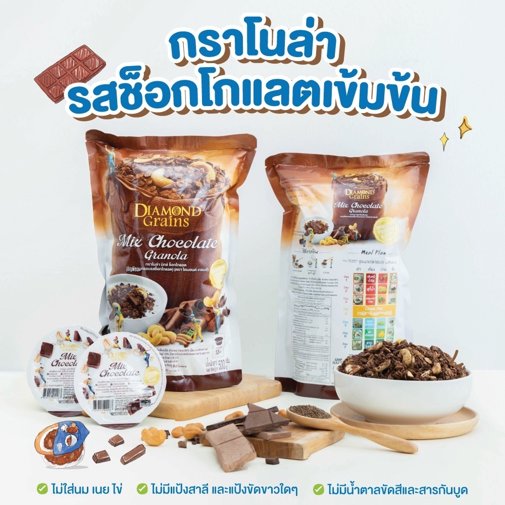 Diamond Grains กราโนล่า สูตร Original Granola ขนาด 500 กรัม รส Mix Chocolate มิกซ์ ช็อกโกแลต