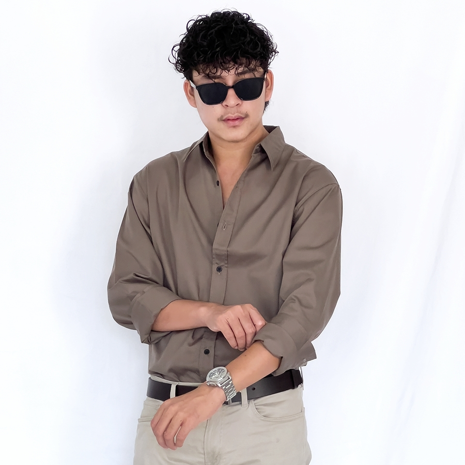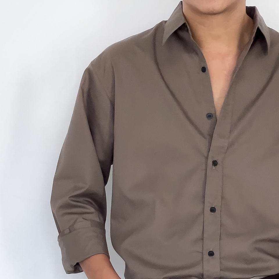Fomo-เชิ้ตแขนยาว สีมอคค่า เสื้อเชิ้ตสีเอิร์ธโทน
