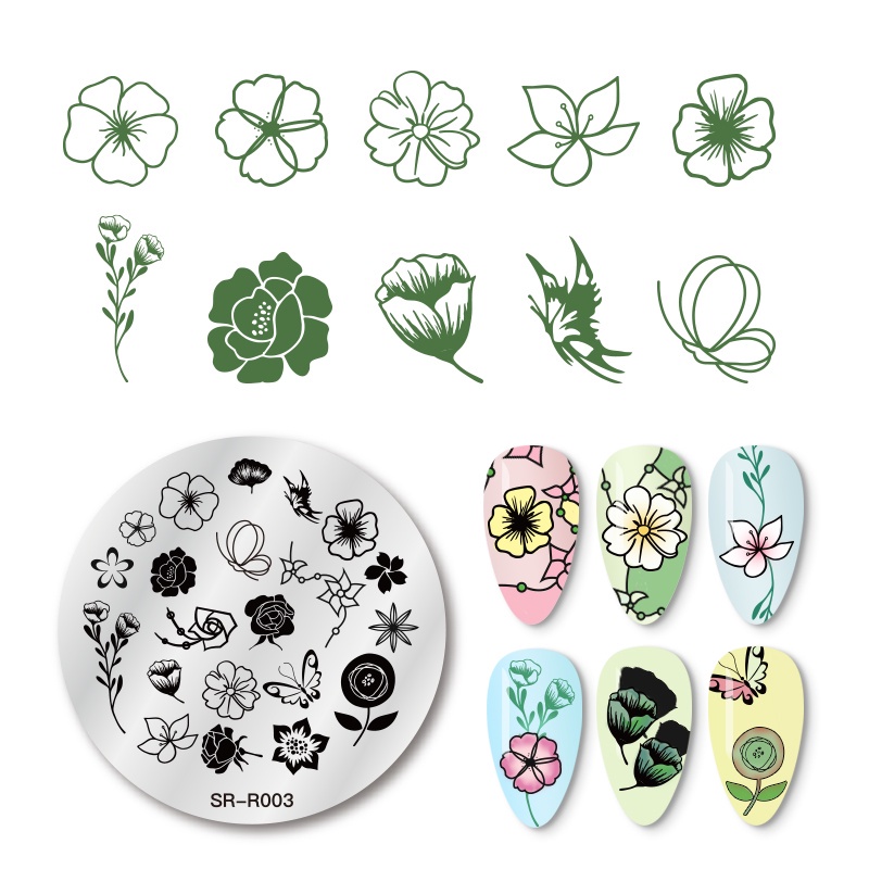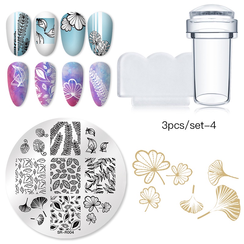 MTSSII 3Pcs/set แผ่นแม่แบบเหล็ก ลายฉลุ เรขาคณิต ดอกไม้ สําหรับตกแต่งเล็บ