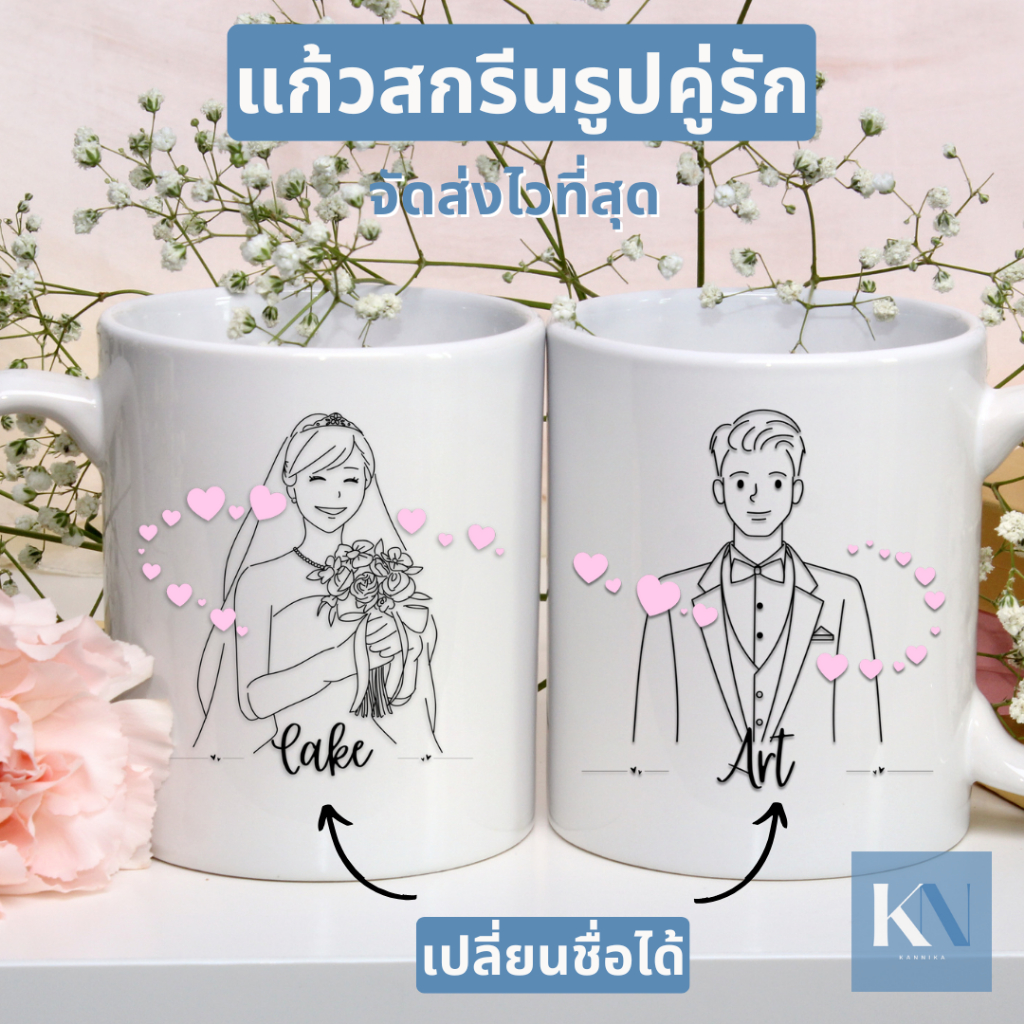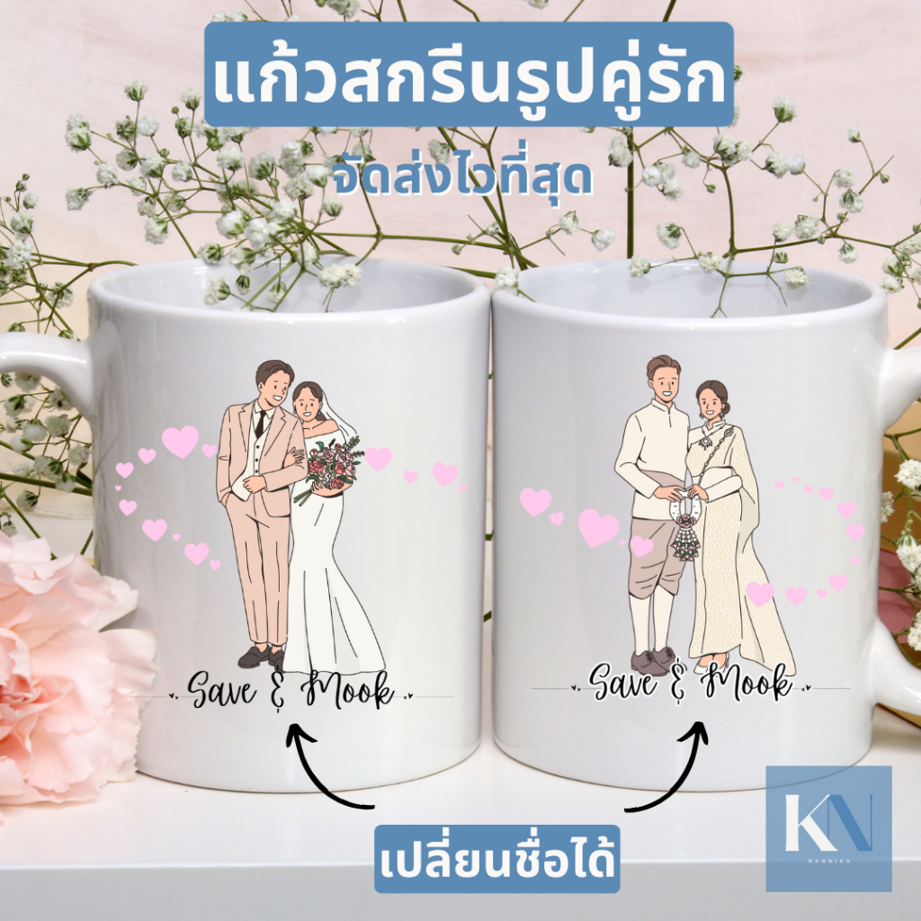 แก้วคู่ แก้วคู่รัก เปลี่ยนชื่อได้ ของขวัญวันครบรอบ ของขวัญแต่งงาน ภรรยา สามี คนรัก