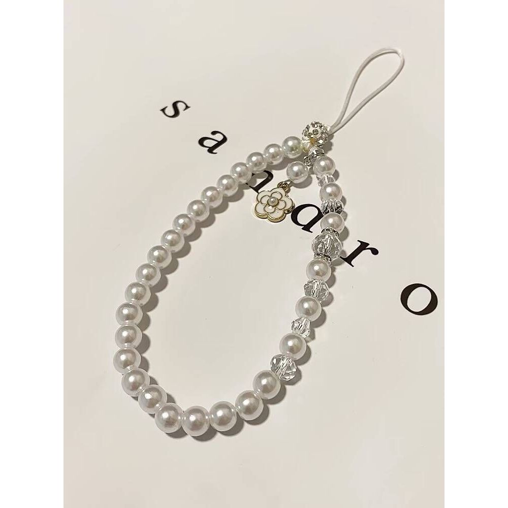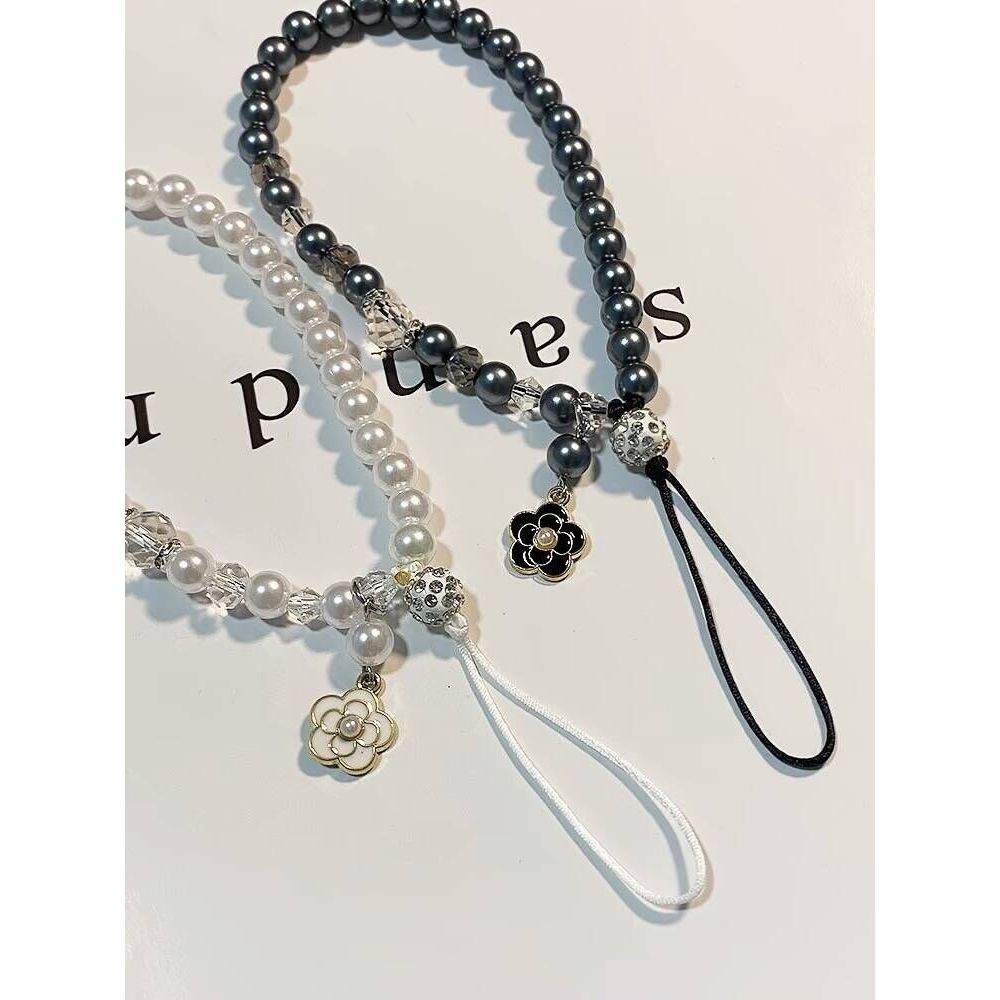 อิน เกาหลีหรูหราดอกคามิเลียมุกลูกปัดโซ่แขวนเชือกแฟชั่นแขวนโซ่แบบพกพาพวงกุญแจเคสโทรศัพท์โซ่เชือกเส้นเล็กสากลโทรศัพท์สร้อยข้อมือป้องกันการล
