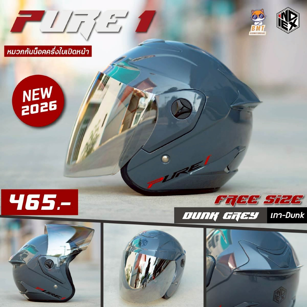 หมวกกันน็อคครึ่งใบ INDEX PURE เปิดหน้า ราคาถูก มีไซต์เดียว รอบศีรษะไม่เกิน 57 cm.