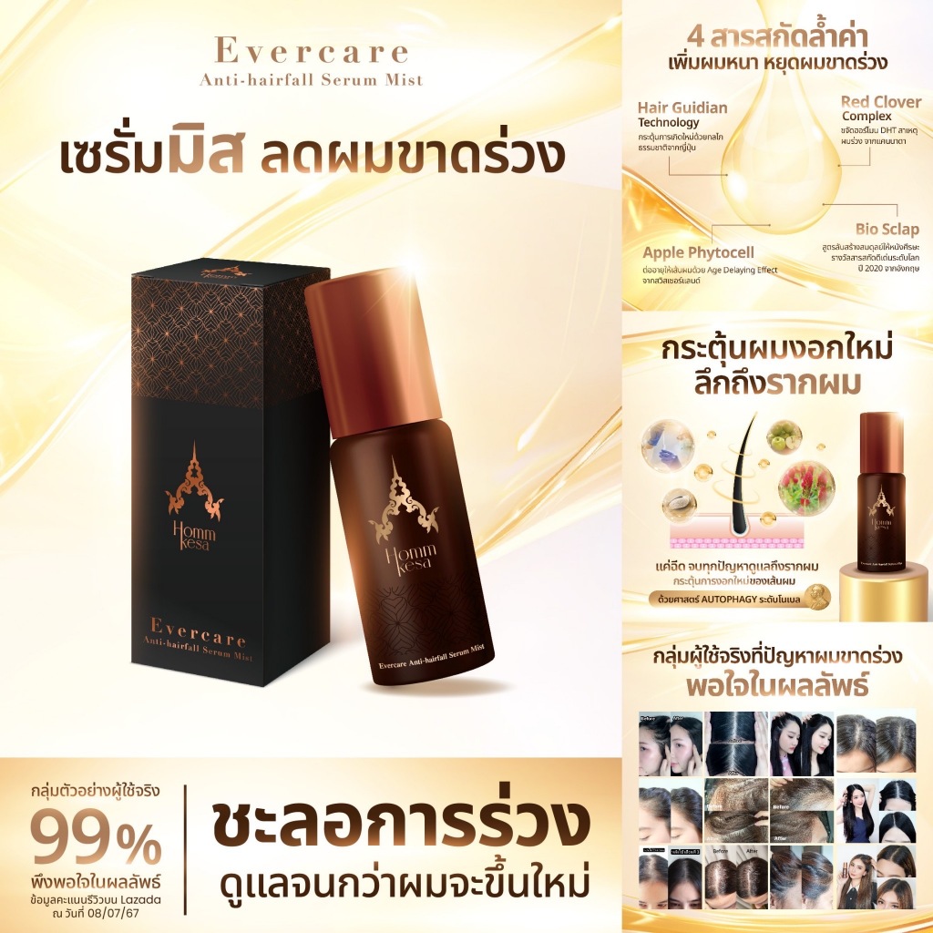Hommkesa SET สุดคุ้ม แชมพูบำรุง+เซรั่มลดผมร่วงเพิ่มผมหนา