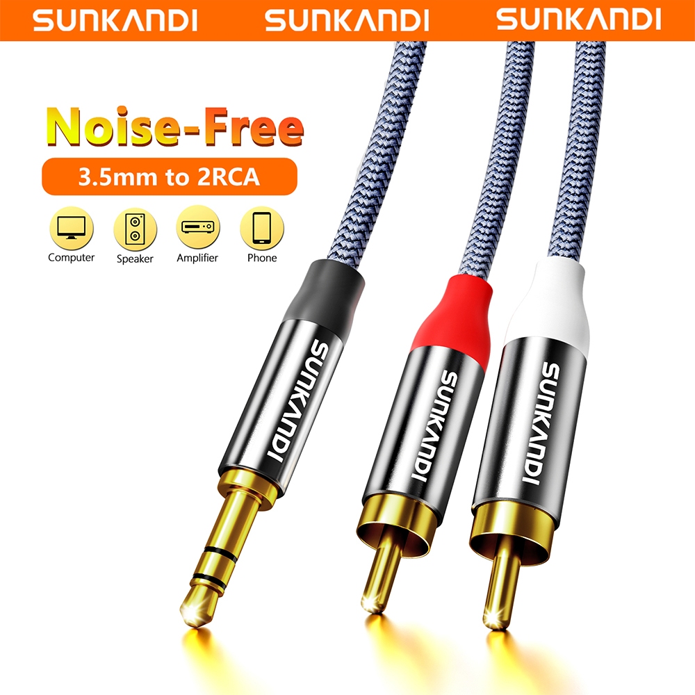 Sunkandi 3.5 มม.ชาย 2RCA สายสัญญาณเสียงแจ็ค AUX Gold-plated สเตอริโอ Y-Splitter สําหรับโฮมเธียเตอร์ลําโพง DVD TV