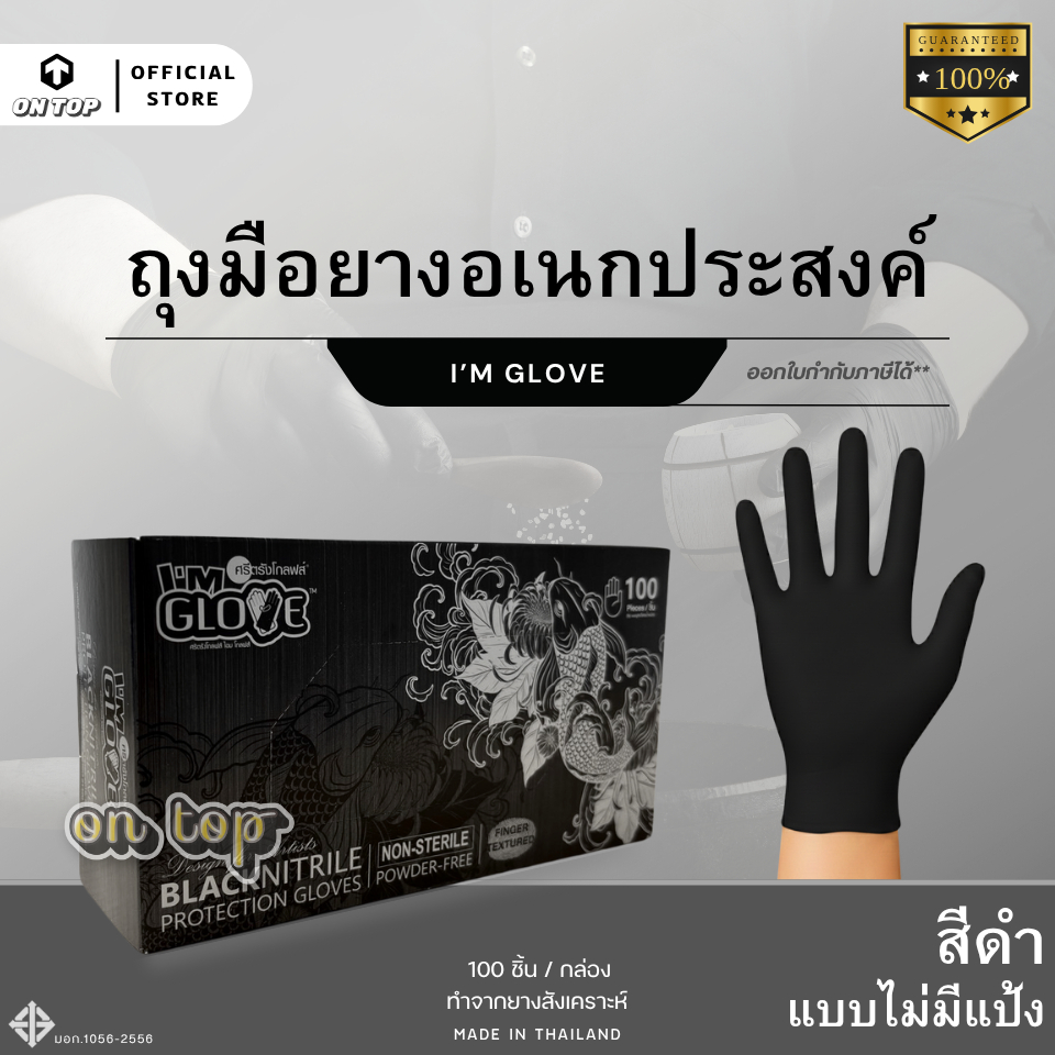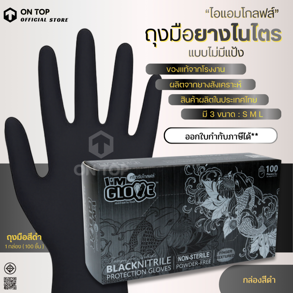 ON TOP ,, ถุงมือไนไตรสีดำ ไม่มีแป้ง จากศรีตรัง ไอแอมโกลฟส์ I AM GLOVE ใช้งานอเนกประสงค์ กล่องสีดำ