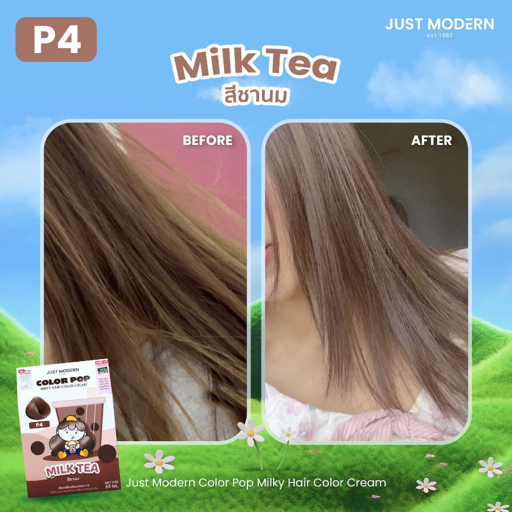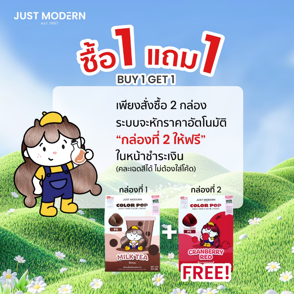 [1แถม1] Just Modern (จัสท์โมเดอร์น) Color Pop Milky Hair Color Cream ครีมเปลี่ยนสีผมปราศจากสารแอมโมเนียและพีพีดี 65 มล.