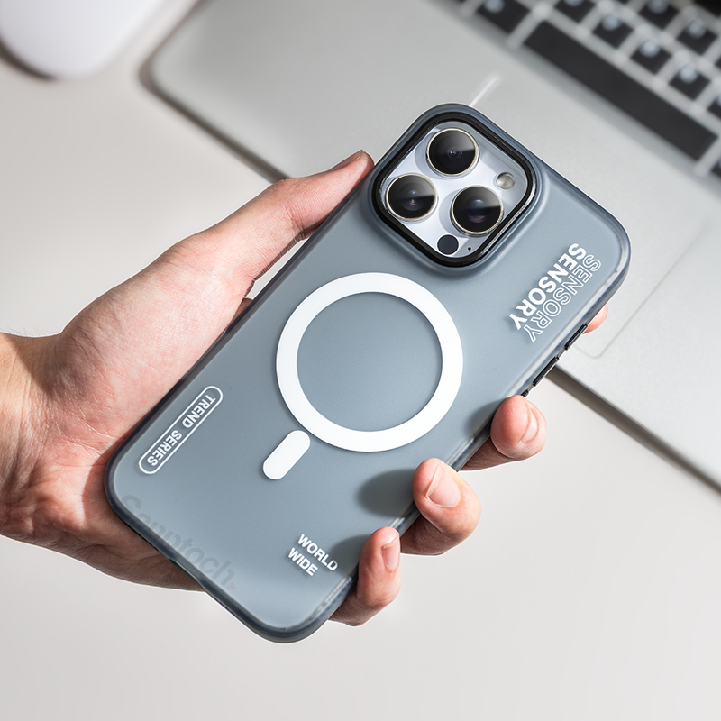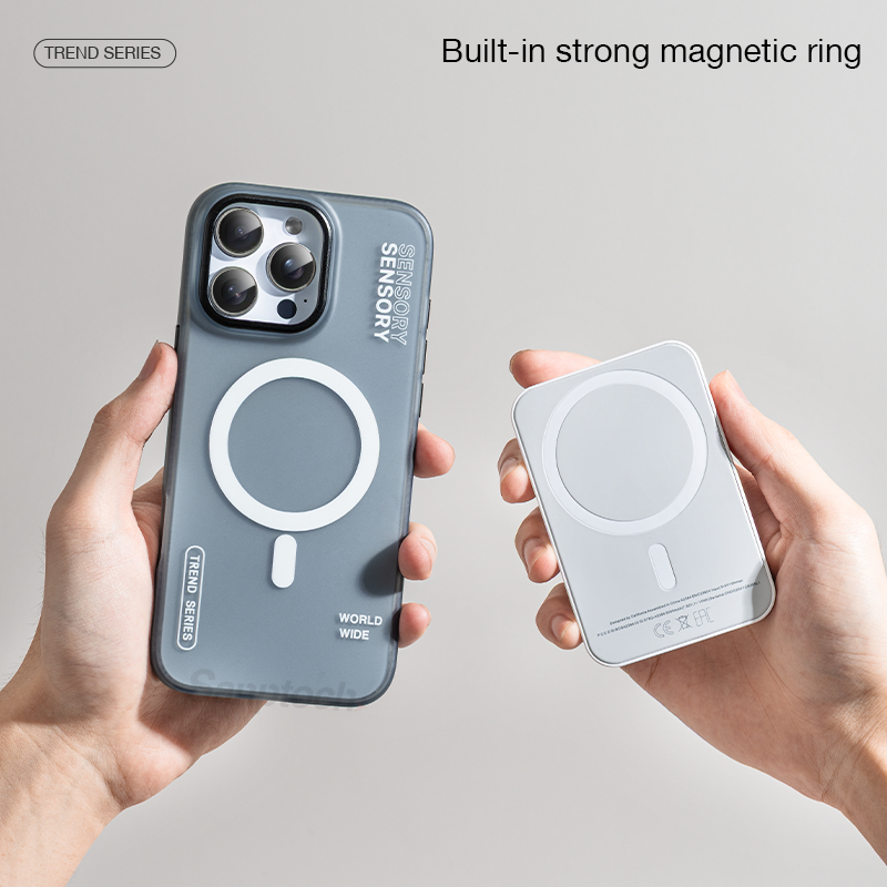 Sanptoch สําหรับ Magnetic Matte Simple Cool เคสโทรศัพท์สําหรับ iPhone 16 15 14 13 Pro Max Soft Tpu Edge + Frosted Anti-ลายนิ้วมือปกหลังกันกระแทก Hard Protection ปลอก